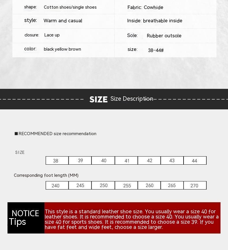 Size: 38, 39, 40, 41, 42, 43, 44