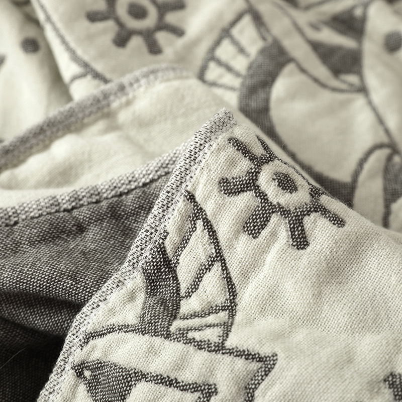 Bedspread made of 100% cotton. Beige front with pattern in gray, gray on back with beige pattern.