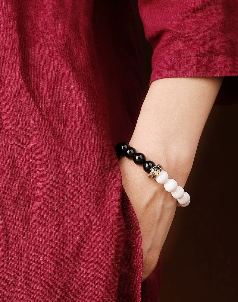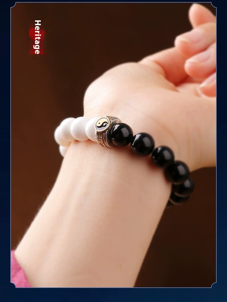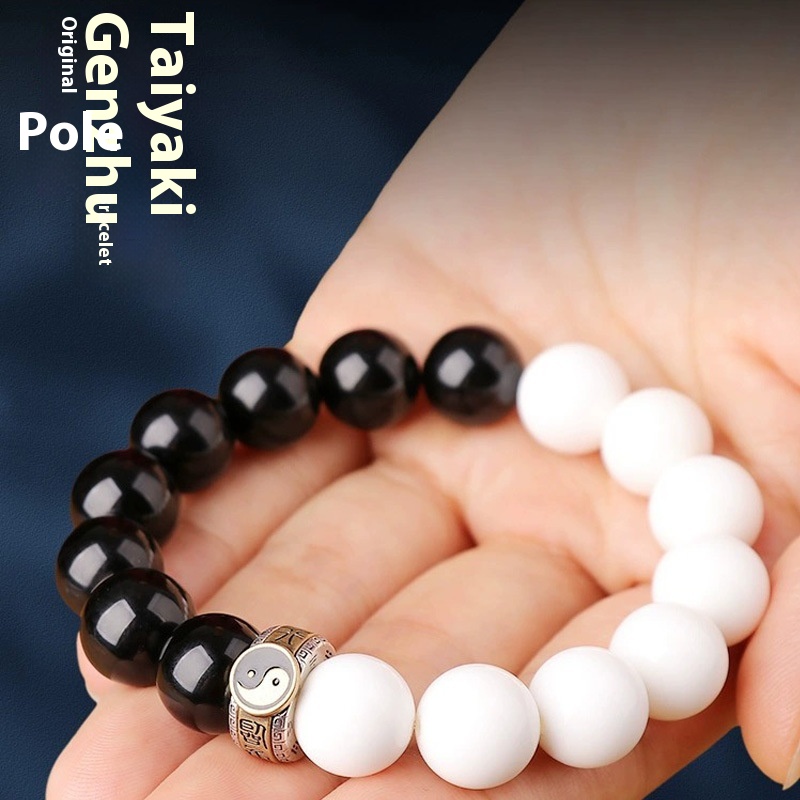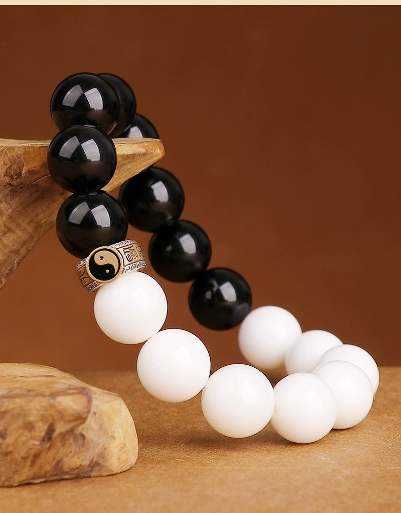 Taiji Bracelet Obsidian Bodhi Six Word Mantra