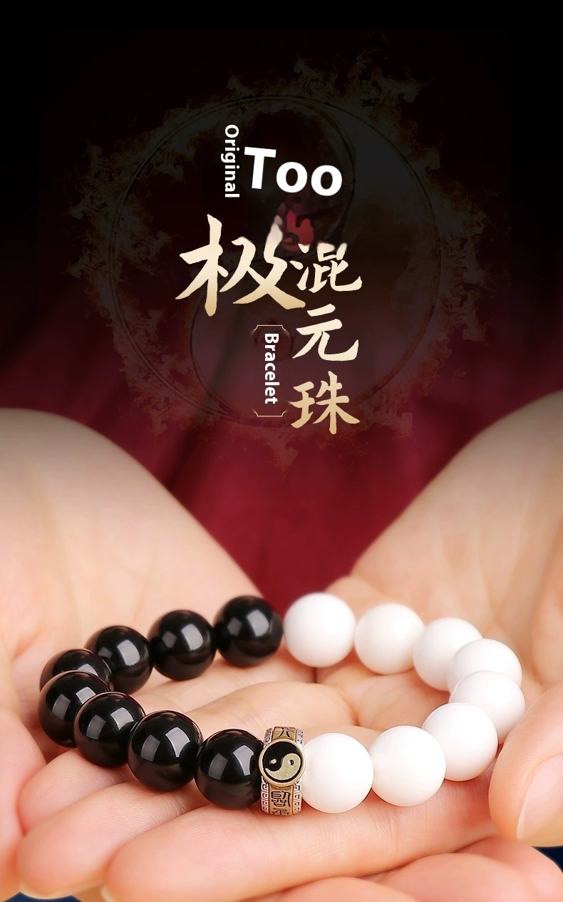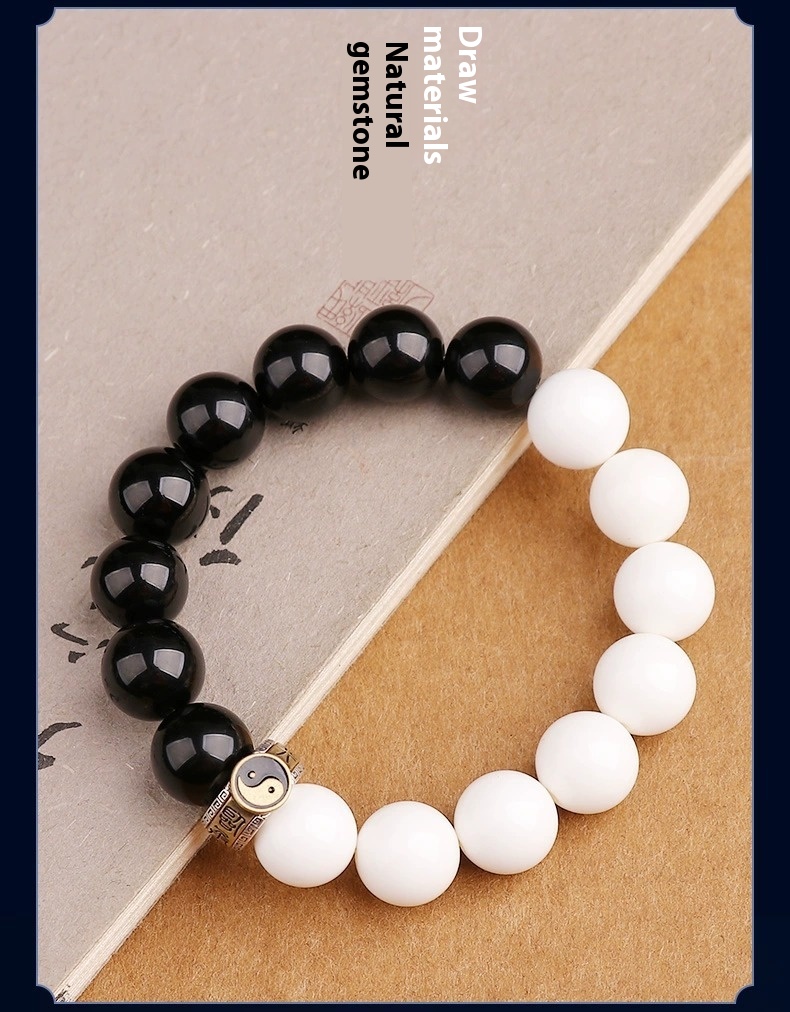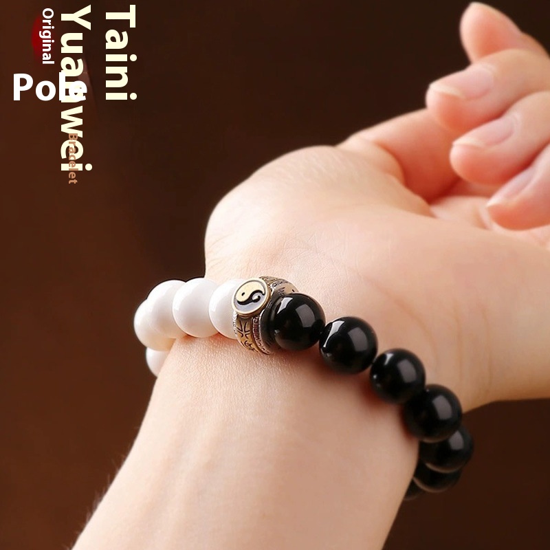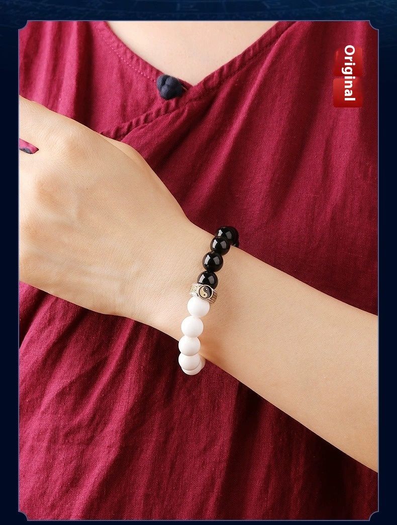 Taiji Bracelet Obsidian Bodhi Six Word Mantra