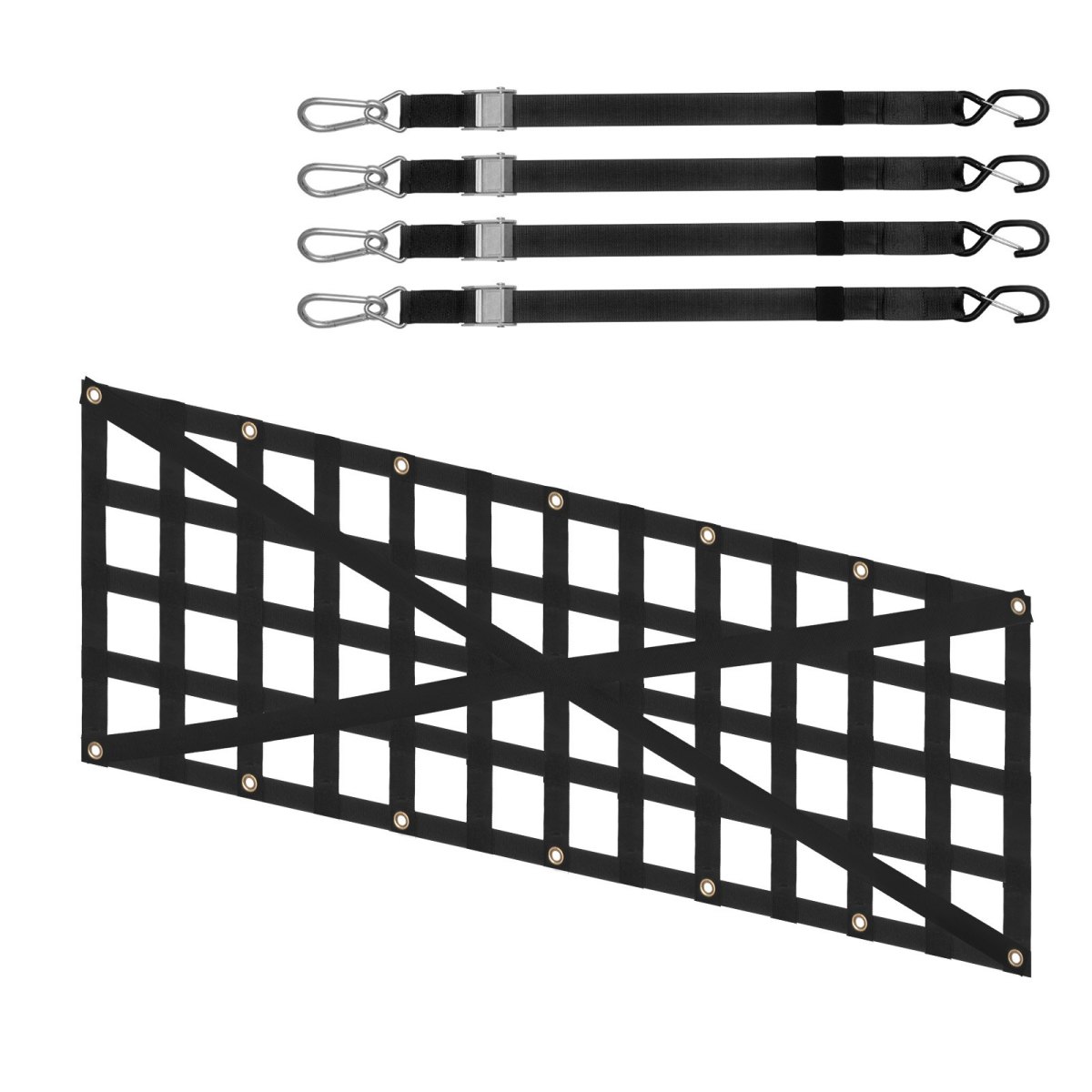 Easy Installation & Disassembly: VEVOR tailgate net for pickup truck bed is equipped with metal buckles and S-hooks on each telescopic strap. You just need to fix the four S-hooks on the vehicle and there are no additional tools required, which saves time and improves efficiency. (Tip: Please make sure you have fixed the anchors or bolts on your truck.)