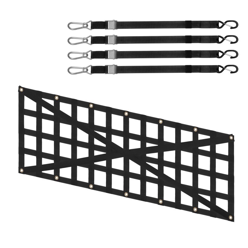 Cross-reinforcement Design: Upgraded cross-strap design of our 54" x 18" tailgate net can increase the stress points and evenly distribute the stress of the items. Furthermore, the tailgate net has a load capacity of up to 600 lbs and is great for transporting large or extra-long items like kayaks, motorcycles, luggage, and construction materials. The finer mesh avoids falling items.