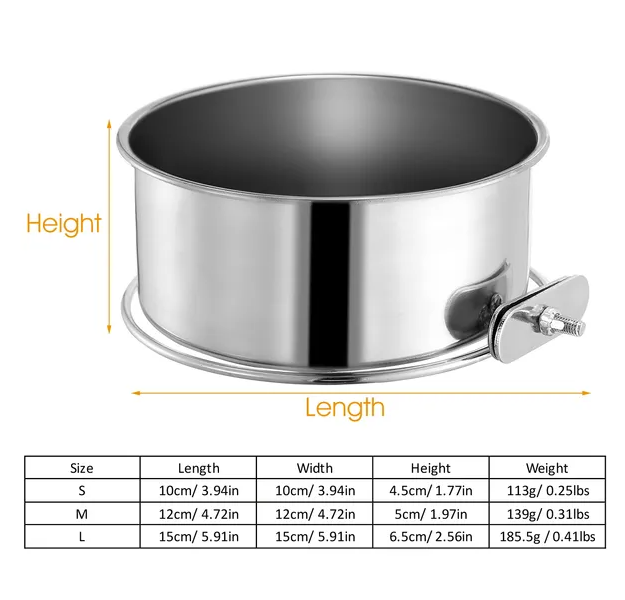 **THOUGHTFUL DESIGN*:The crate dog bowl with round bowl design can be used as a crate food bowl or cage water bowl. With the clamp holder making it tightly fixed onto dog cage; cat cage; bird cage or other pet cage; which effectively helps avoid the dog bowl moving while eating.