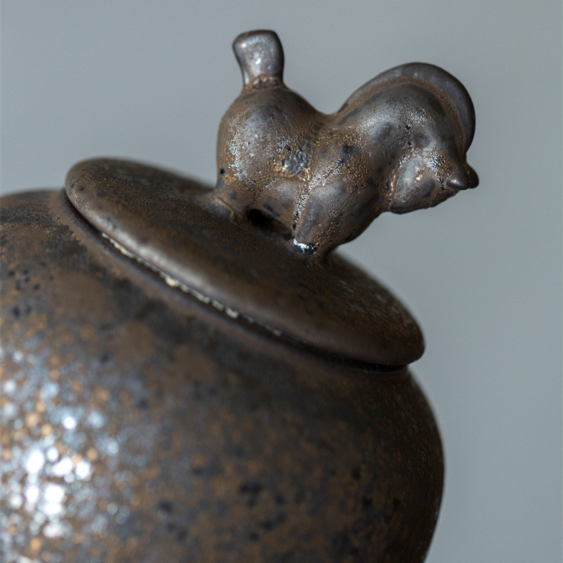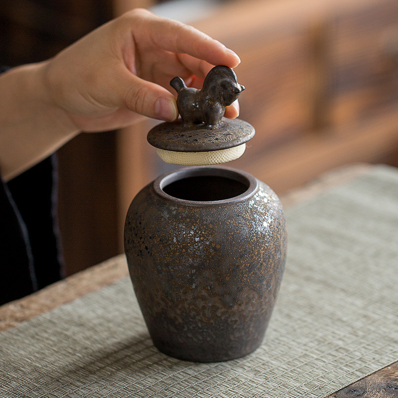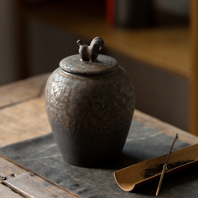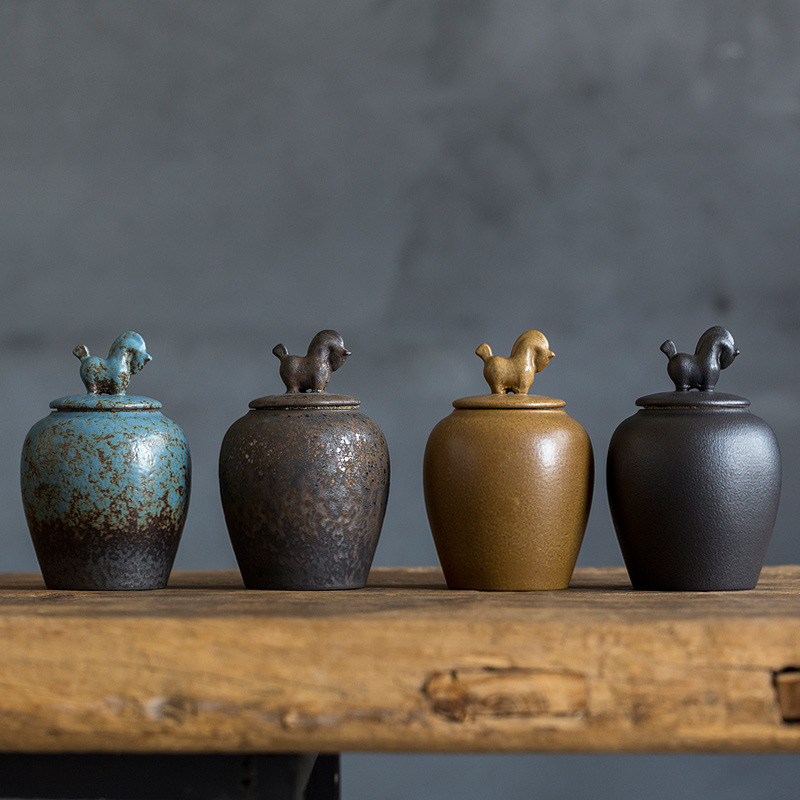 Color: [Small] One Horse Takes Leading Tea Caddy Gold Style, [Small] One Horse Takes Leading Tea Caddy Vintage Yellow, [S] One Horse Takes The Lead Tea Caddy Black Pottery Model, [S] One Horse Takes The Lead The Tea Caddy Kiln Turns Blue, [Large] One Horse Takes The Lead Tea Caddy Gilt style, [Large] Take the lead in tea cans, vintage yellow, [Large] Take the lead in tea cans, black pottery, [Large] Take The lead in tea cans, kiln turn blue