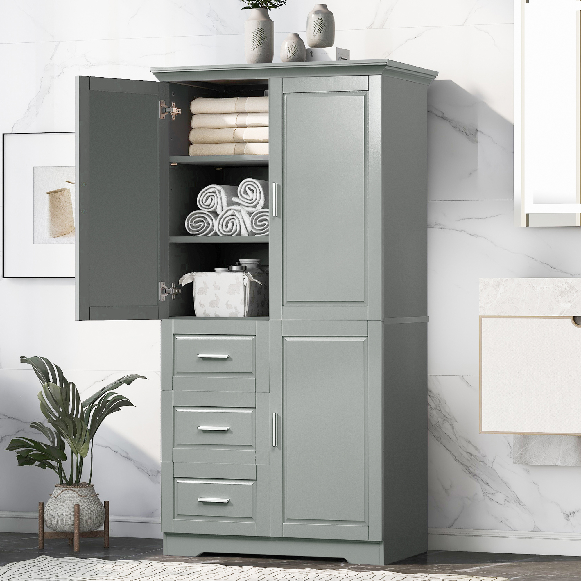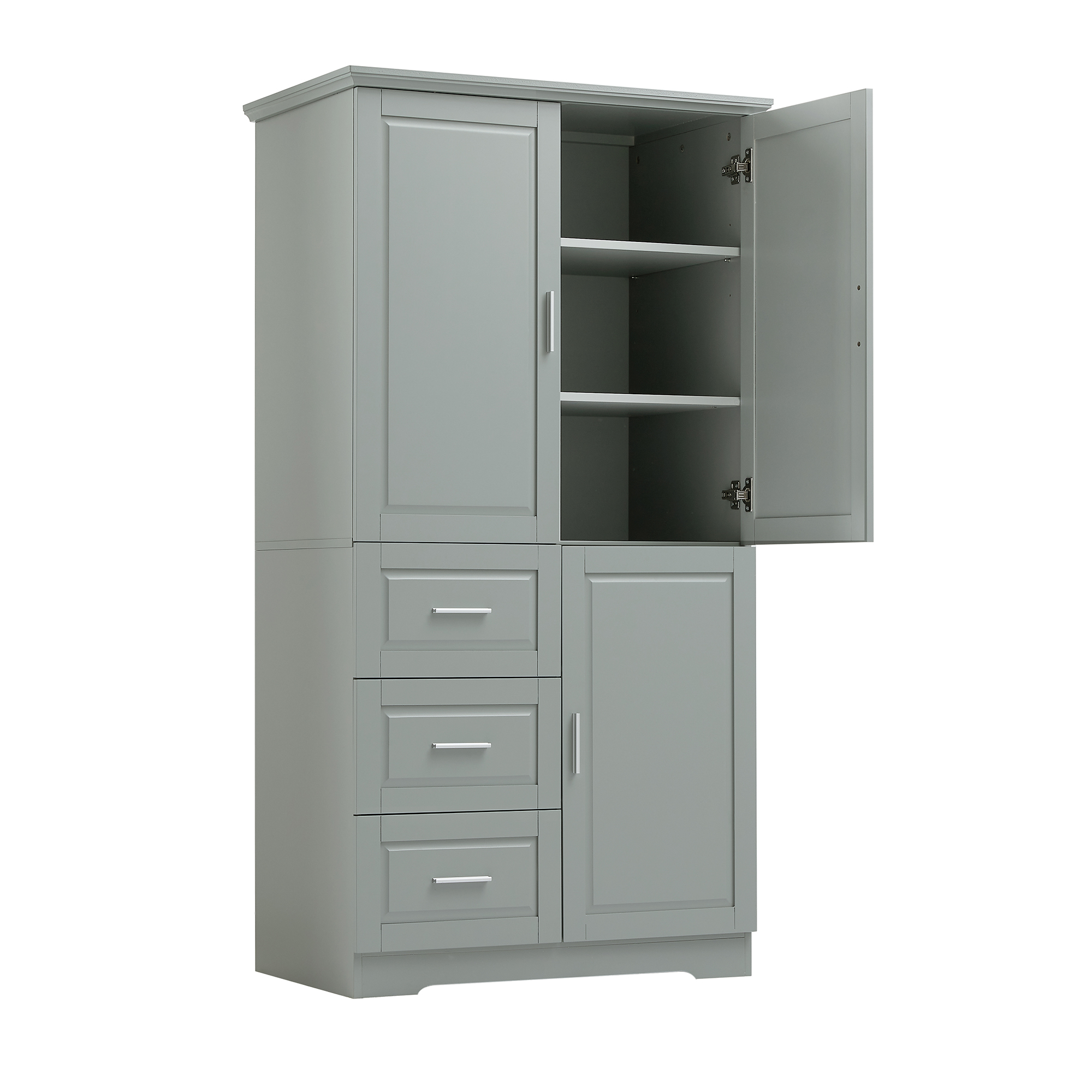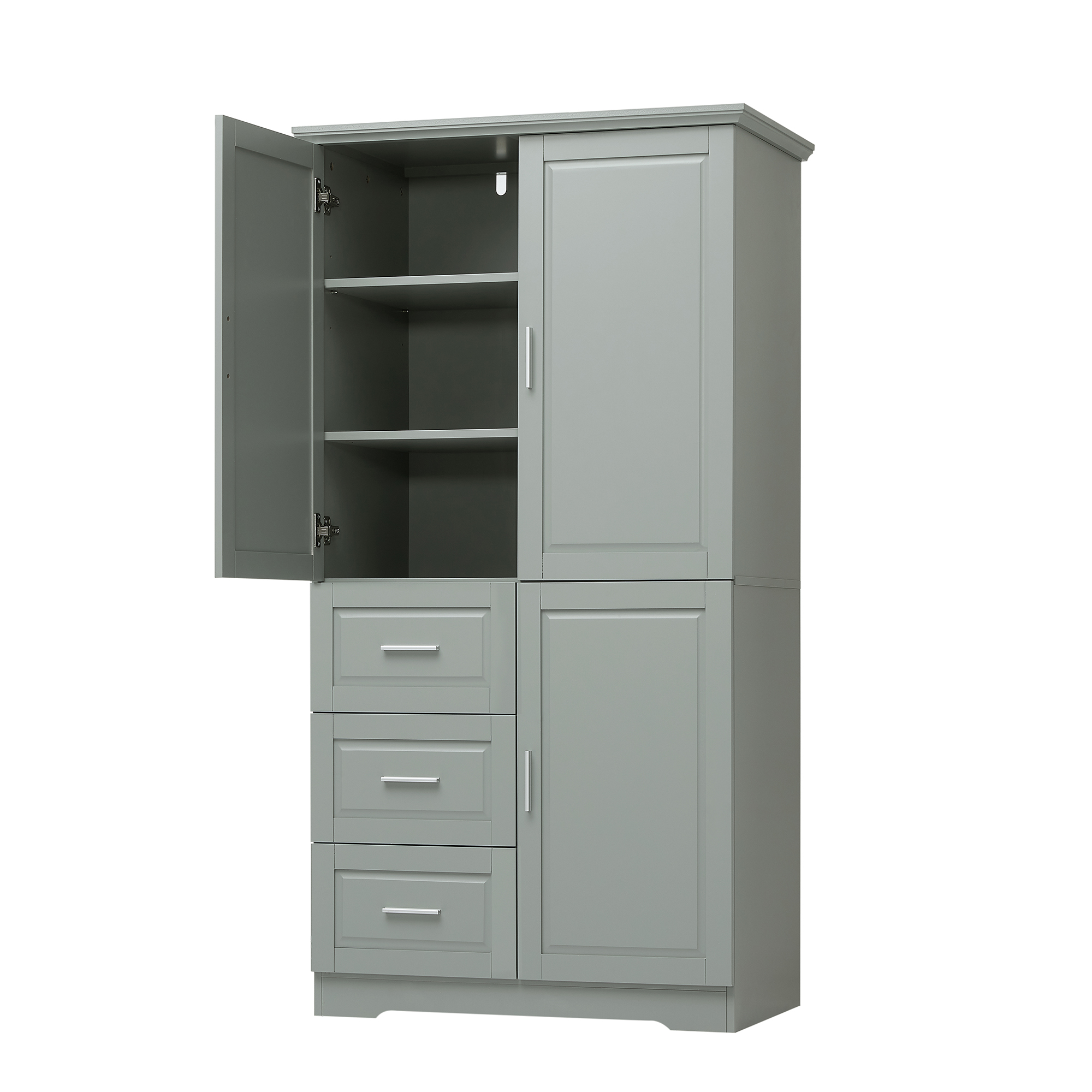 Product Name:Tall and Wide Storage Cabinet with Doors for Bathroom/Office, Three Drawers, Grey