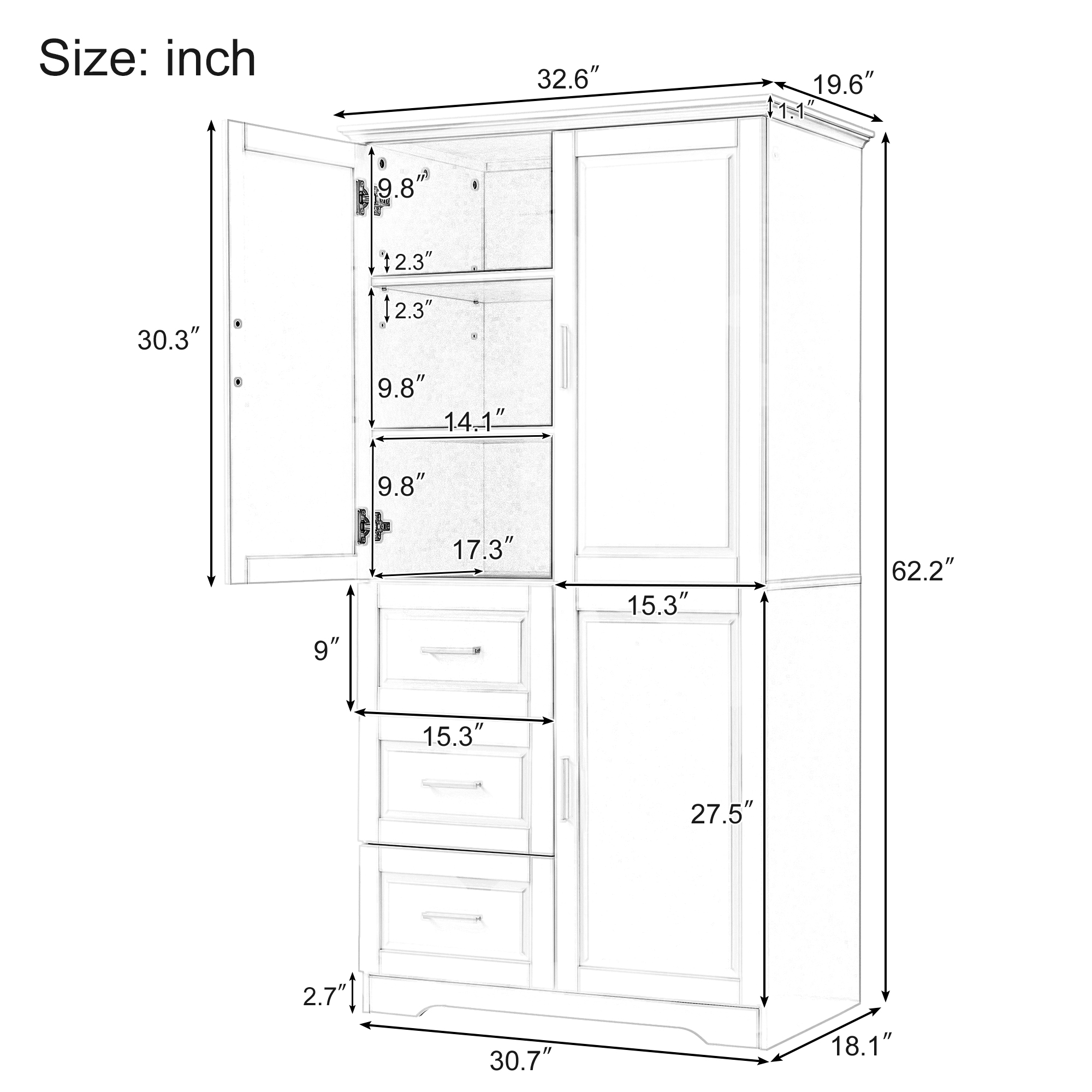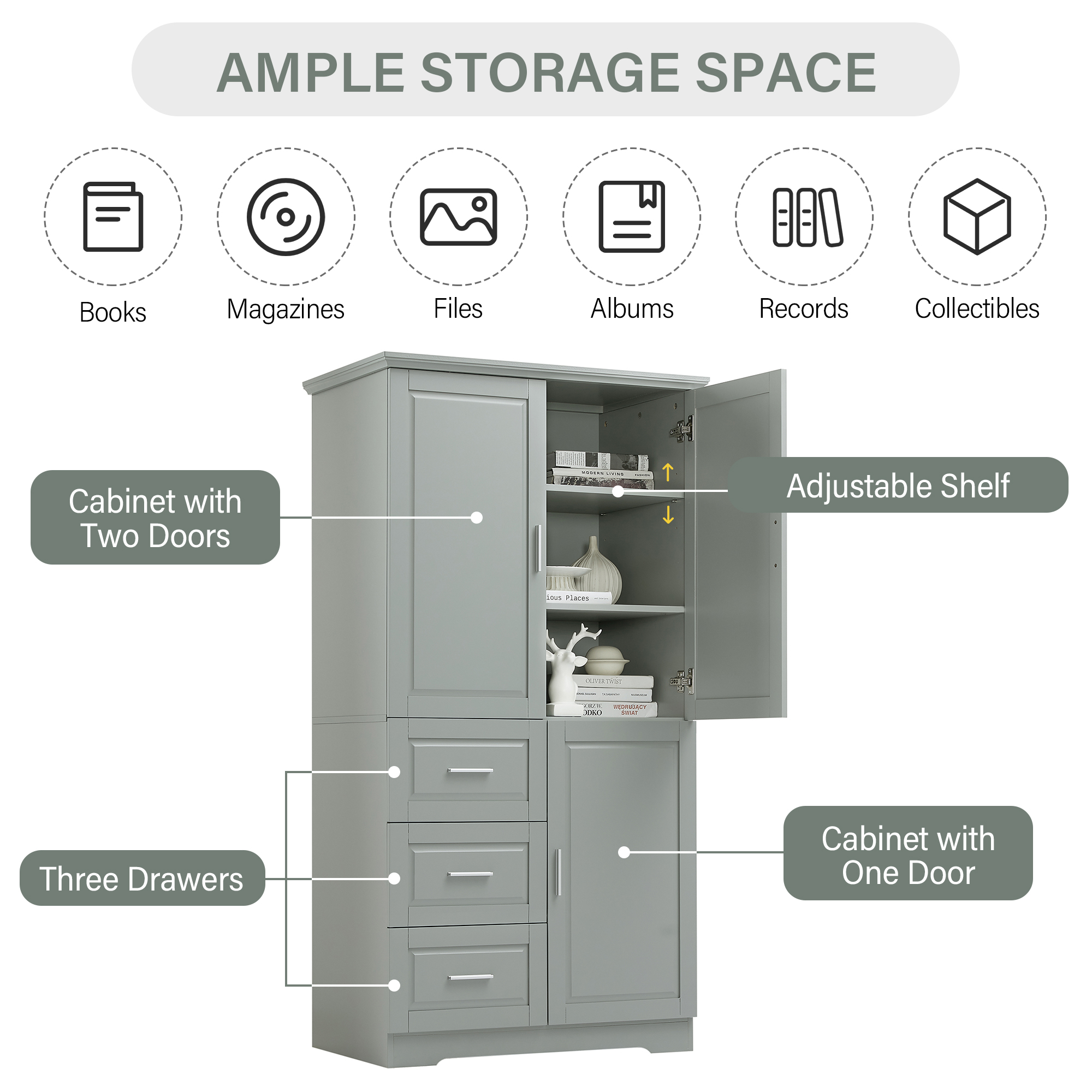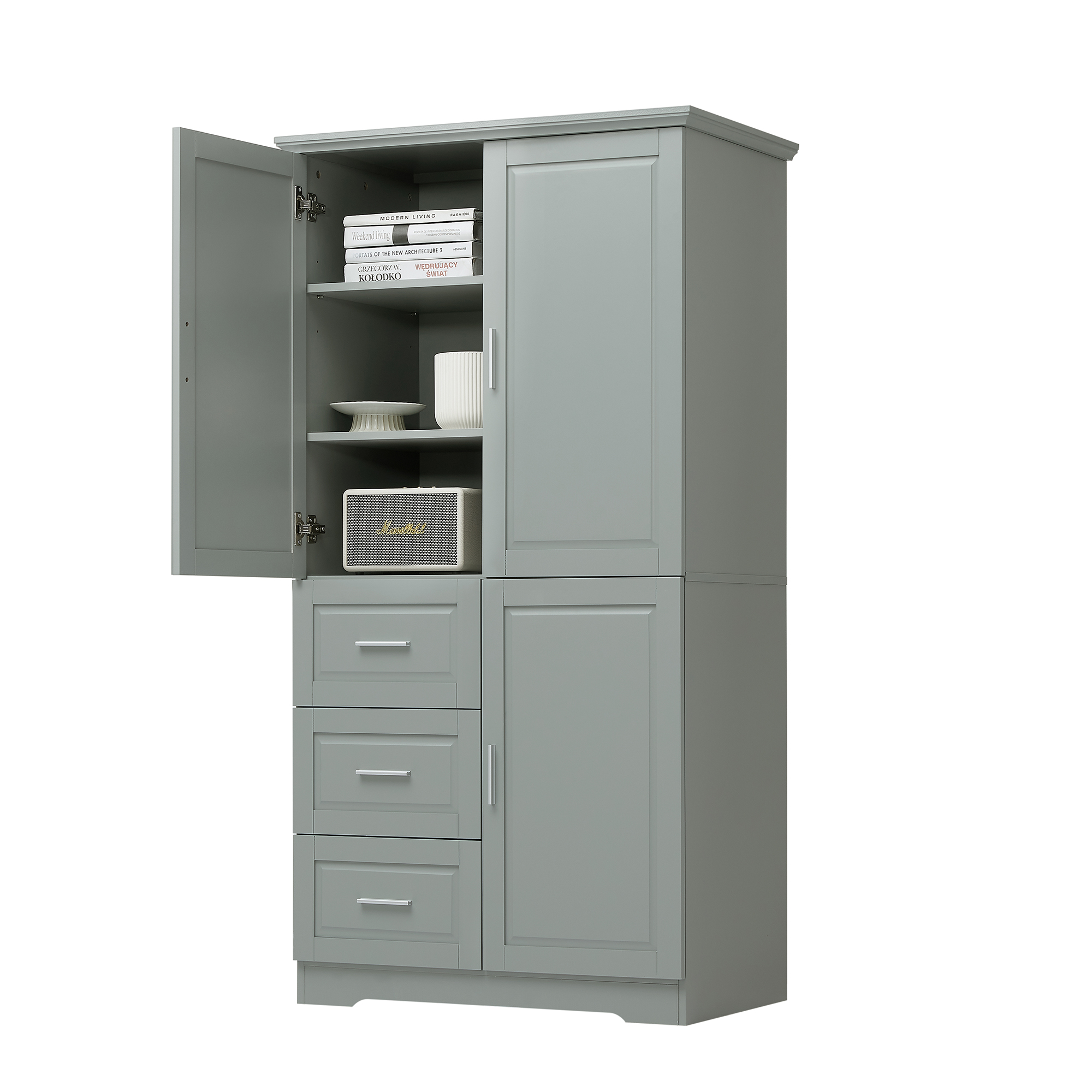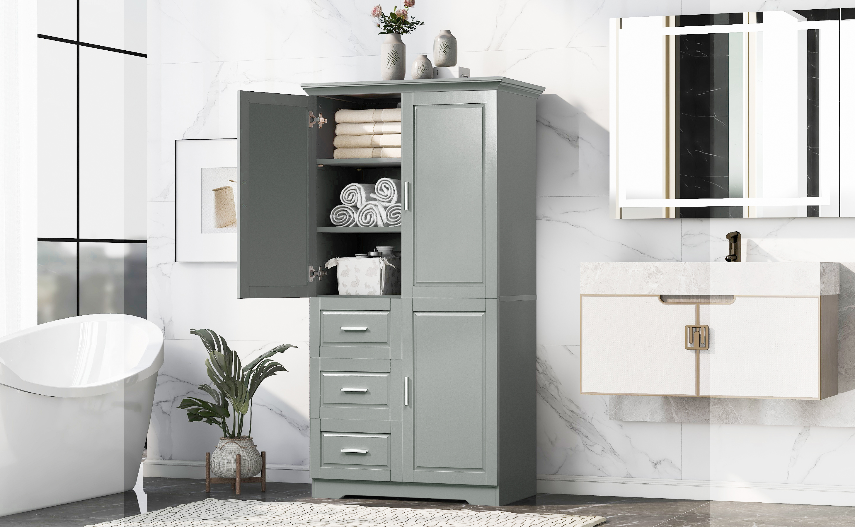 Product Name:Tall and Wide Storage Cabinet with Doors for Bathroom/Office, Three Drawers, Grey