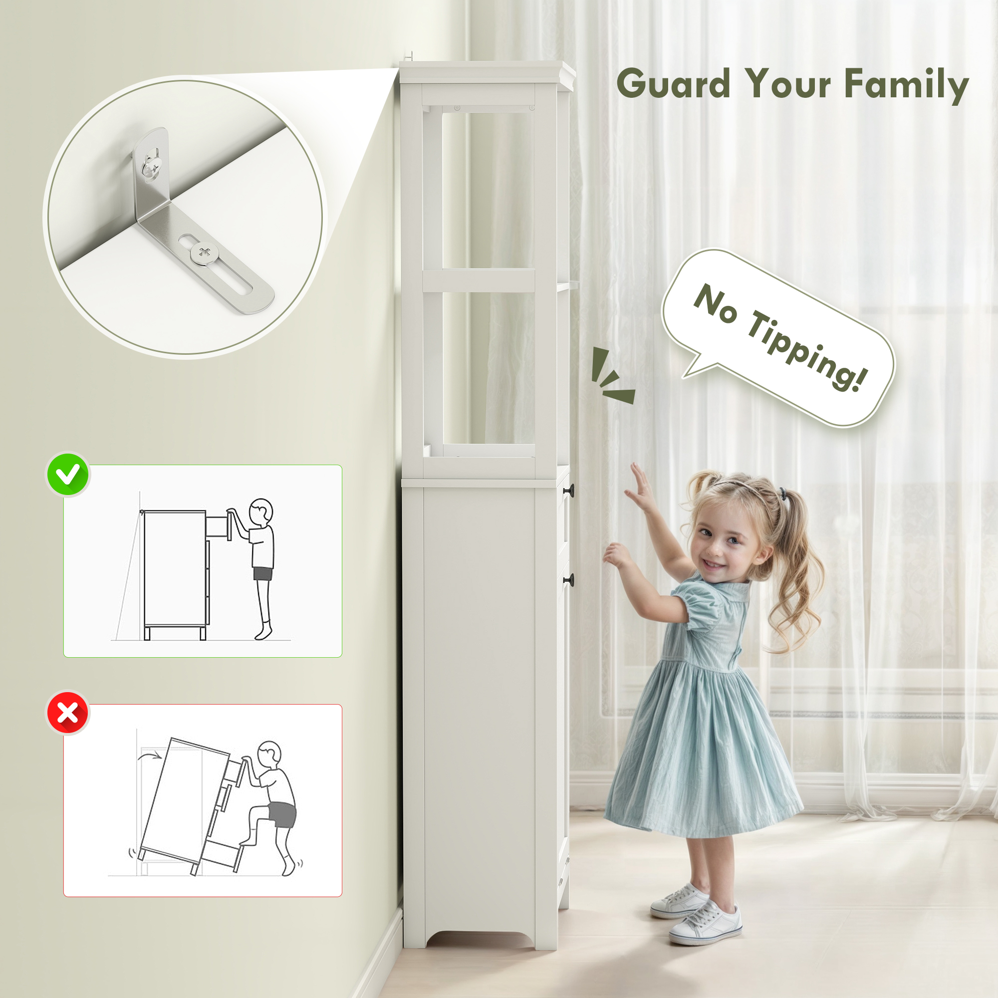 Stylish, all-in-one storage with this tall bathroom cabinet. It combines two upper shelves, a middle drawer and bottom tilting 30 L laundry hamper - hold clean towels, bathroom products and keep dirty laundry discreetly stored away; the removable basket makes it easy to take out and carry to your washing machine. In a tall and narrow size, it's easy to fit into tighter spots and the overall white colour makes it fresh and modern.