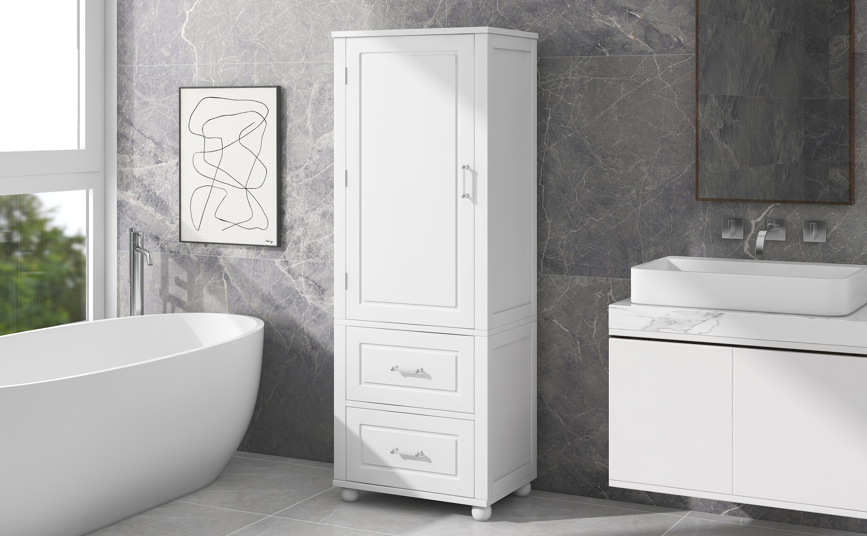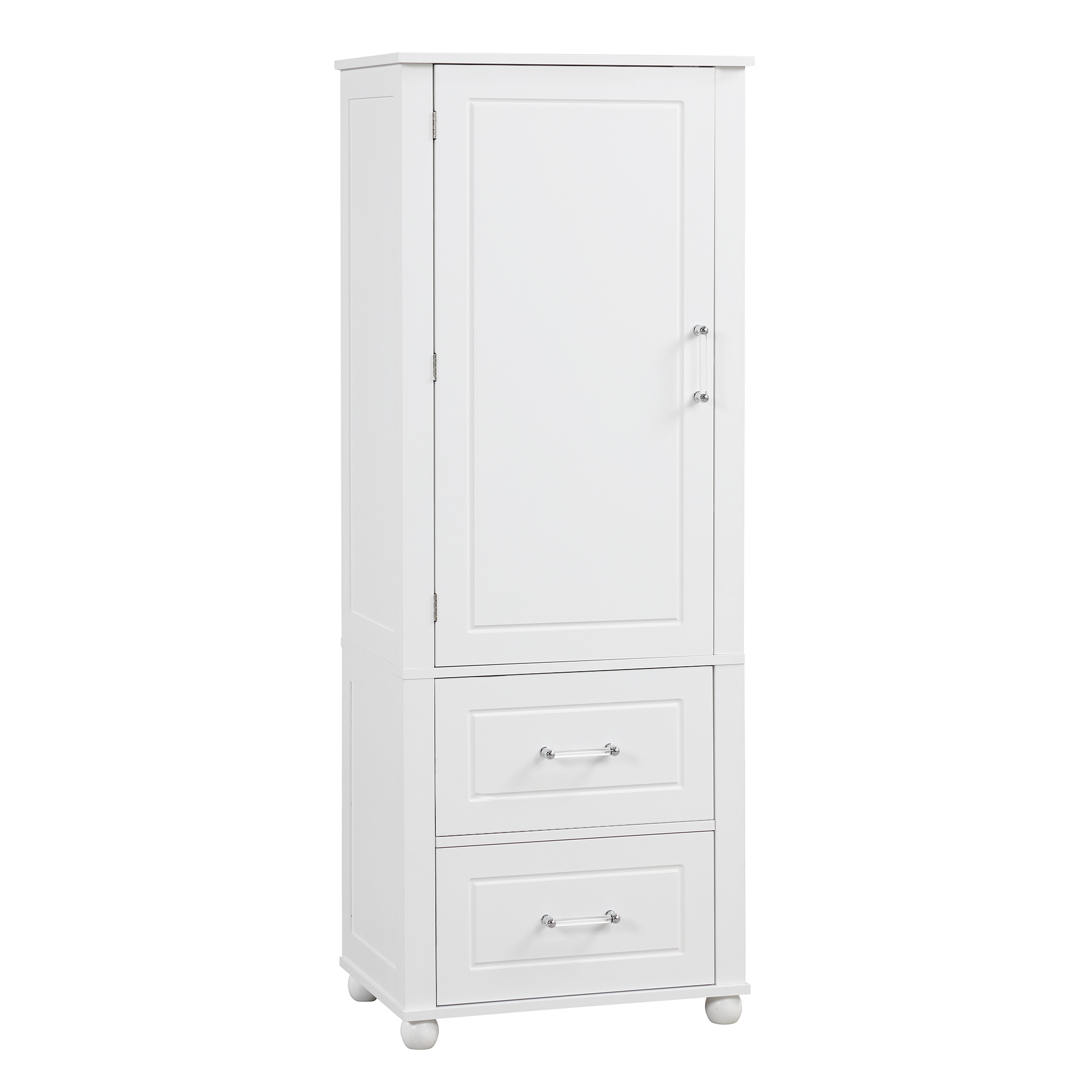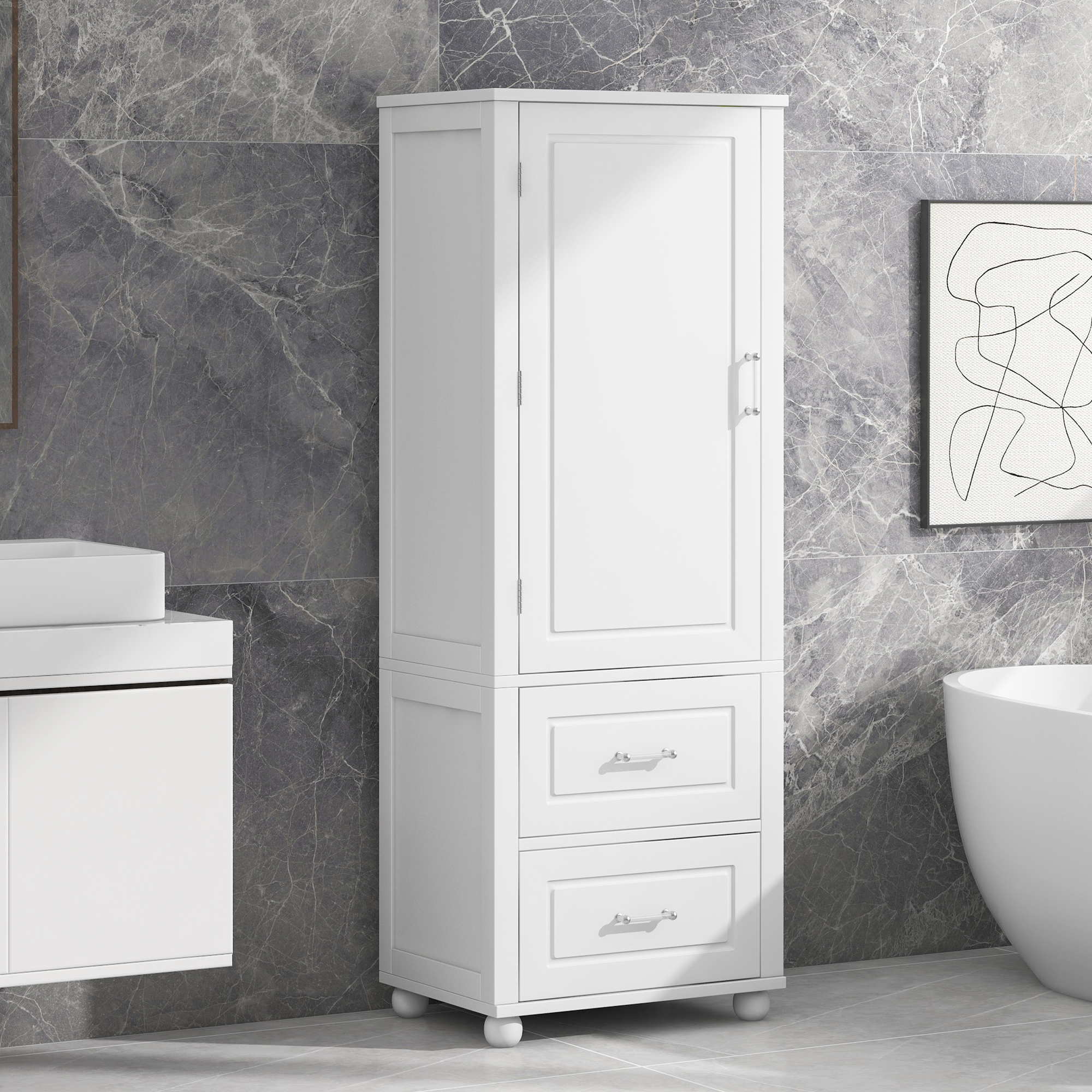 Product Name:Tall Bathroom Storage Cabinet, Freestanding Storage Cabinet with Two Drawers and Adjustable Shelf, MDF Board with Painted Finish, White (Old Sku:WF312728AAK/N725P241045K)