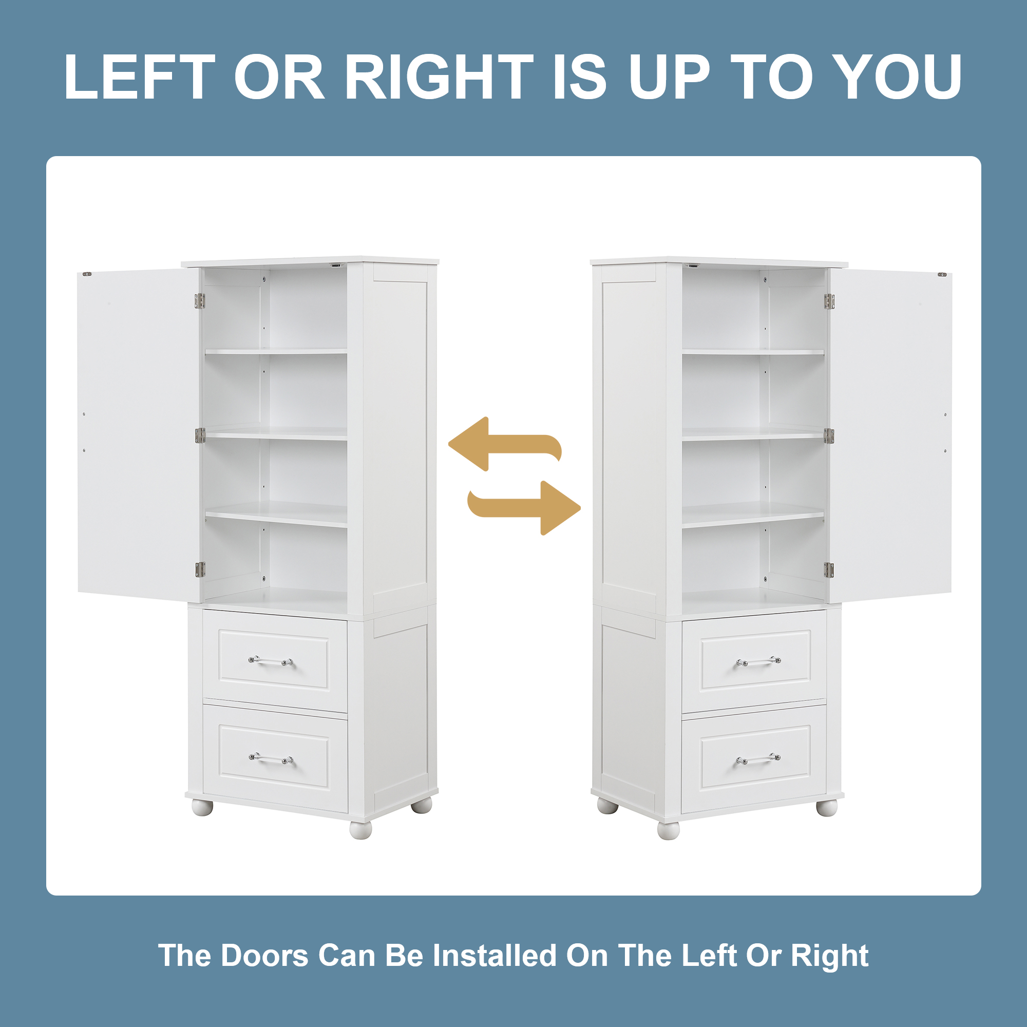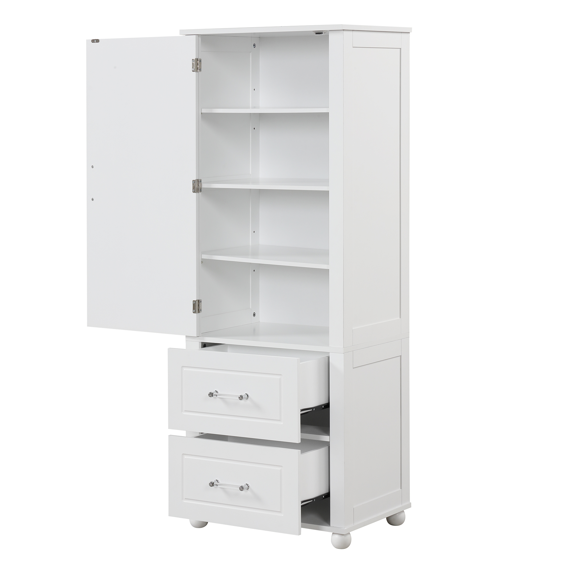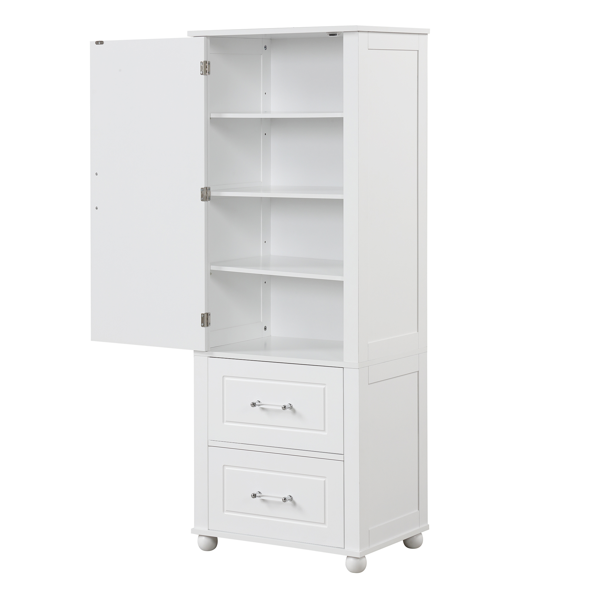 Product Name:Tall Bathroom Storage Cabinet, Freestanding Storage Cabinet with Two Drawers and Adjustable Shelf, MDF Board with Painted Finish, White (Old Sku:WF312728AAK/N725P241045K)