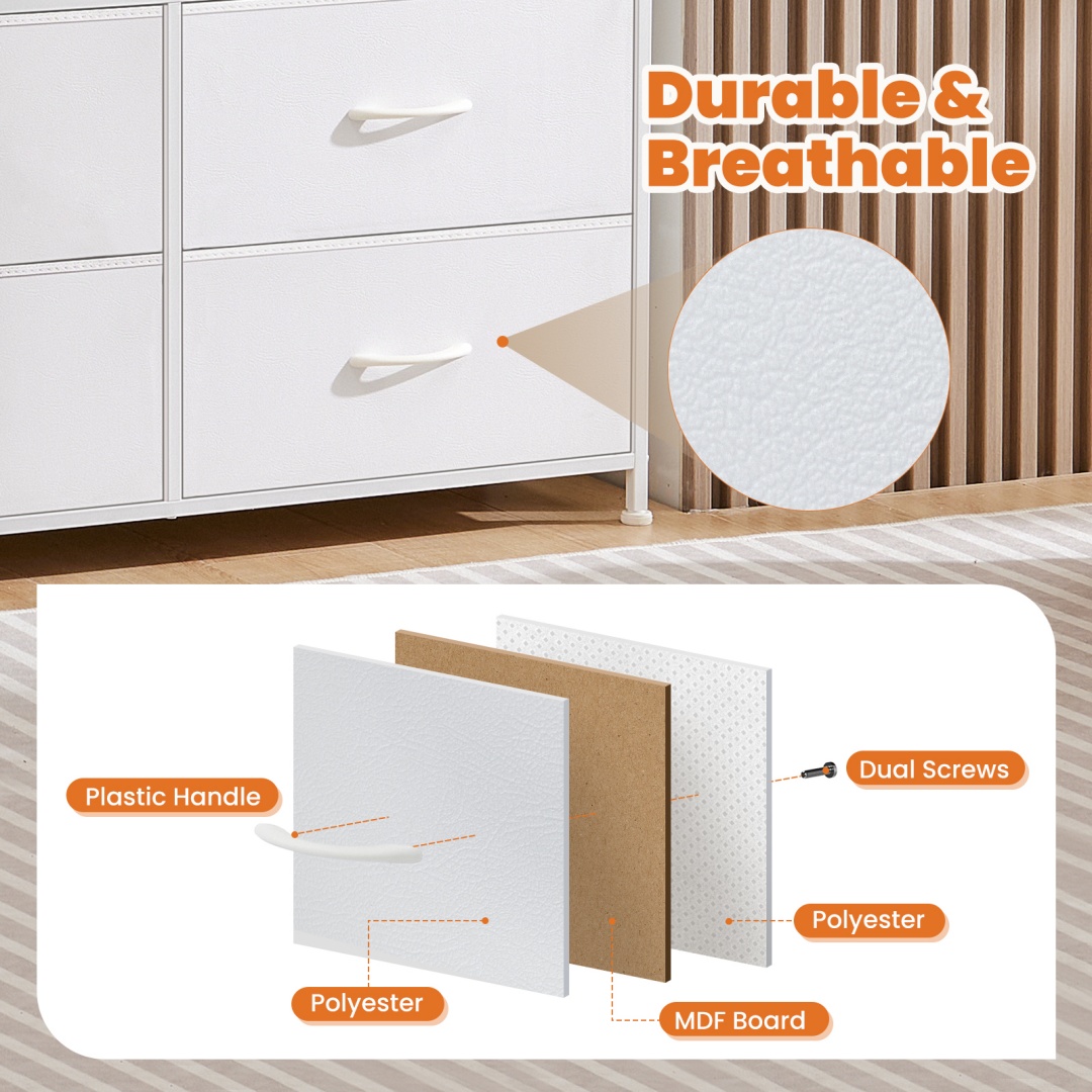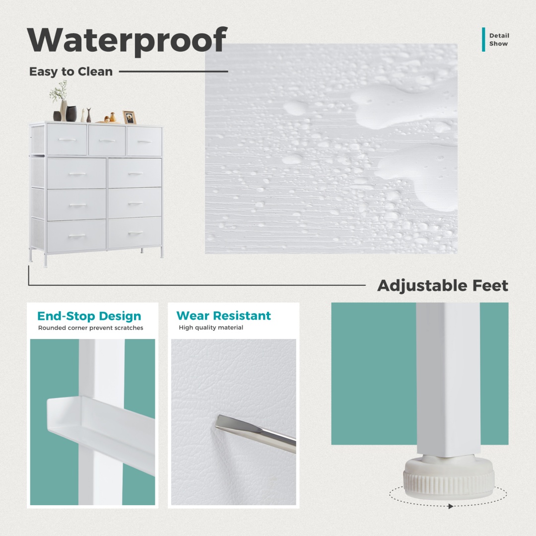 • 【Quality Construction】This fabric dresser combines water-resistant MDF board with a durable steel frame, triangular stable structures to make it sturdy under load 66lb. Anti-tipping accessories are also equipped to prevent accidents.