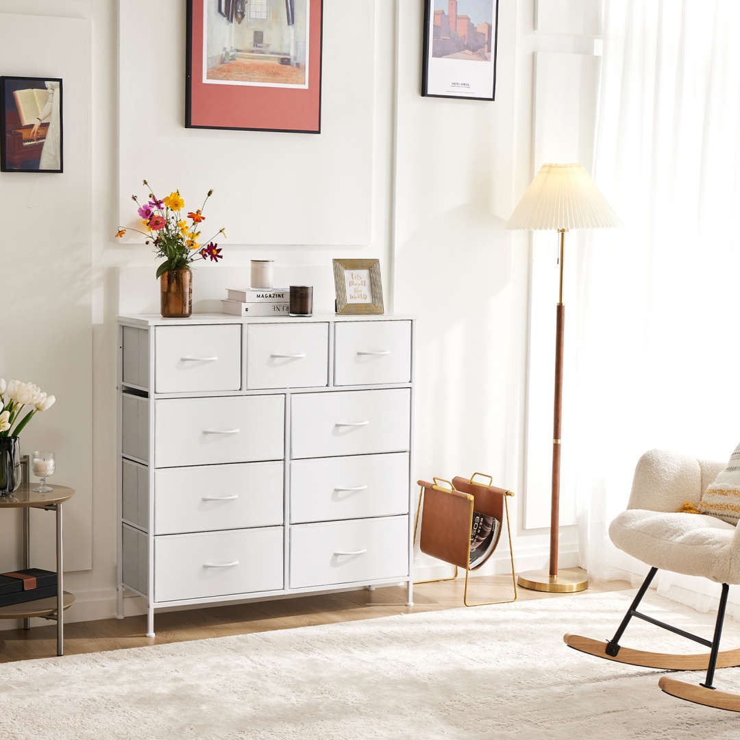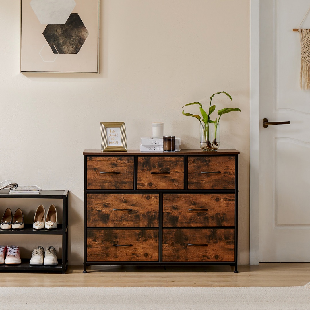 • 【Large Capacity】6 large and 3 medium drawers are to satisfy various storage needs. The wooden top is great for keeping the most-used items within your reach. With plentiful space to organize all your belongings, your room will always be kept in perfect order. Drawer Size: L (11.8" L x 11.8" W x 8.5" H) /M(12" L x 11.4" W x 8.3" H)