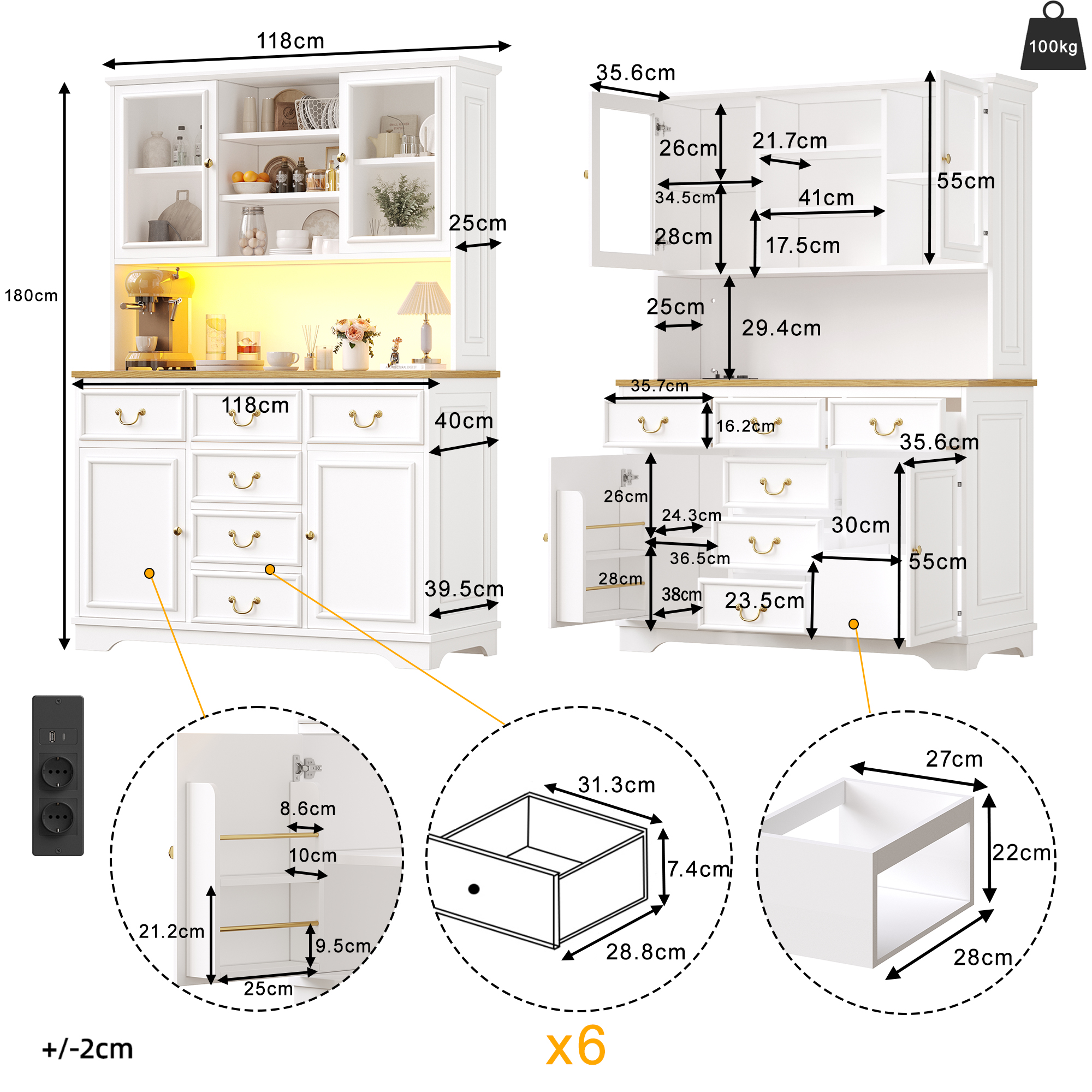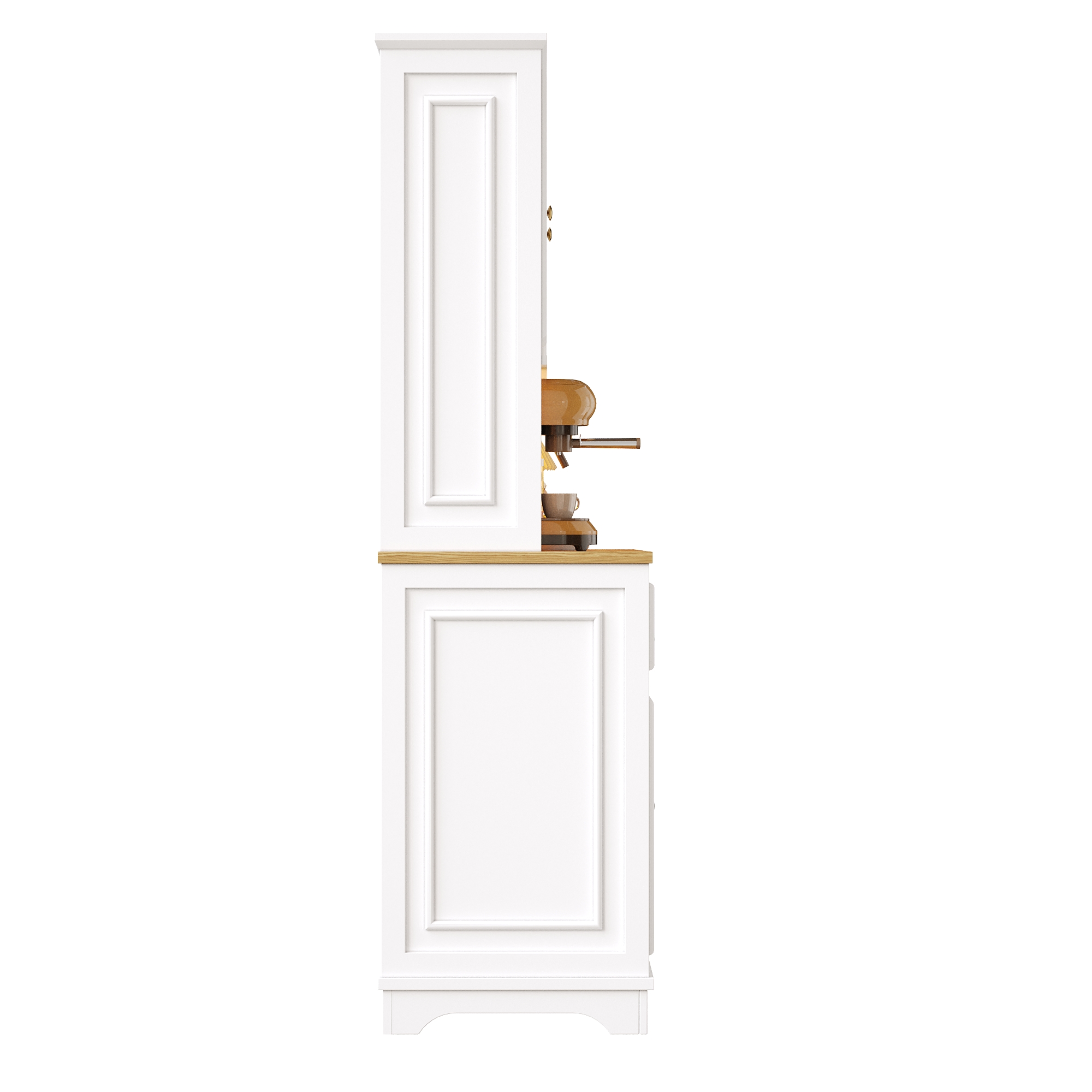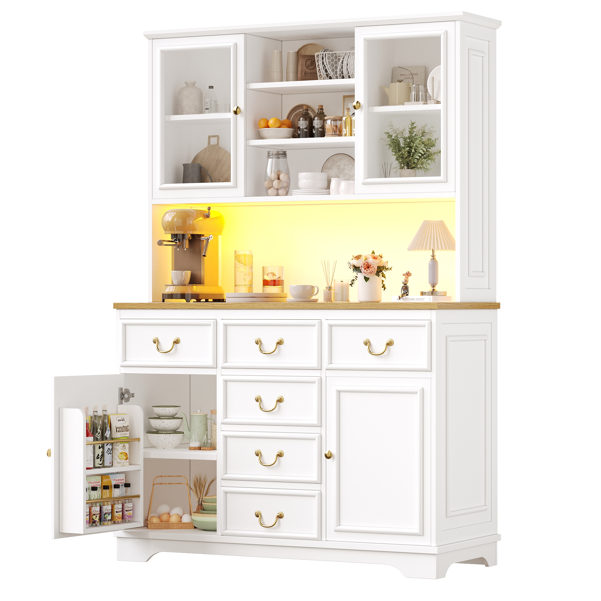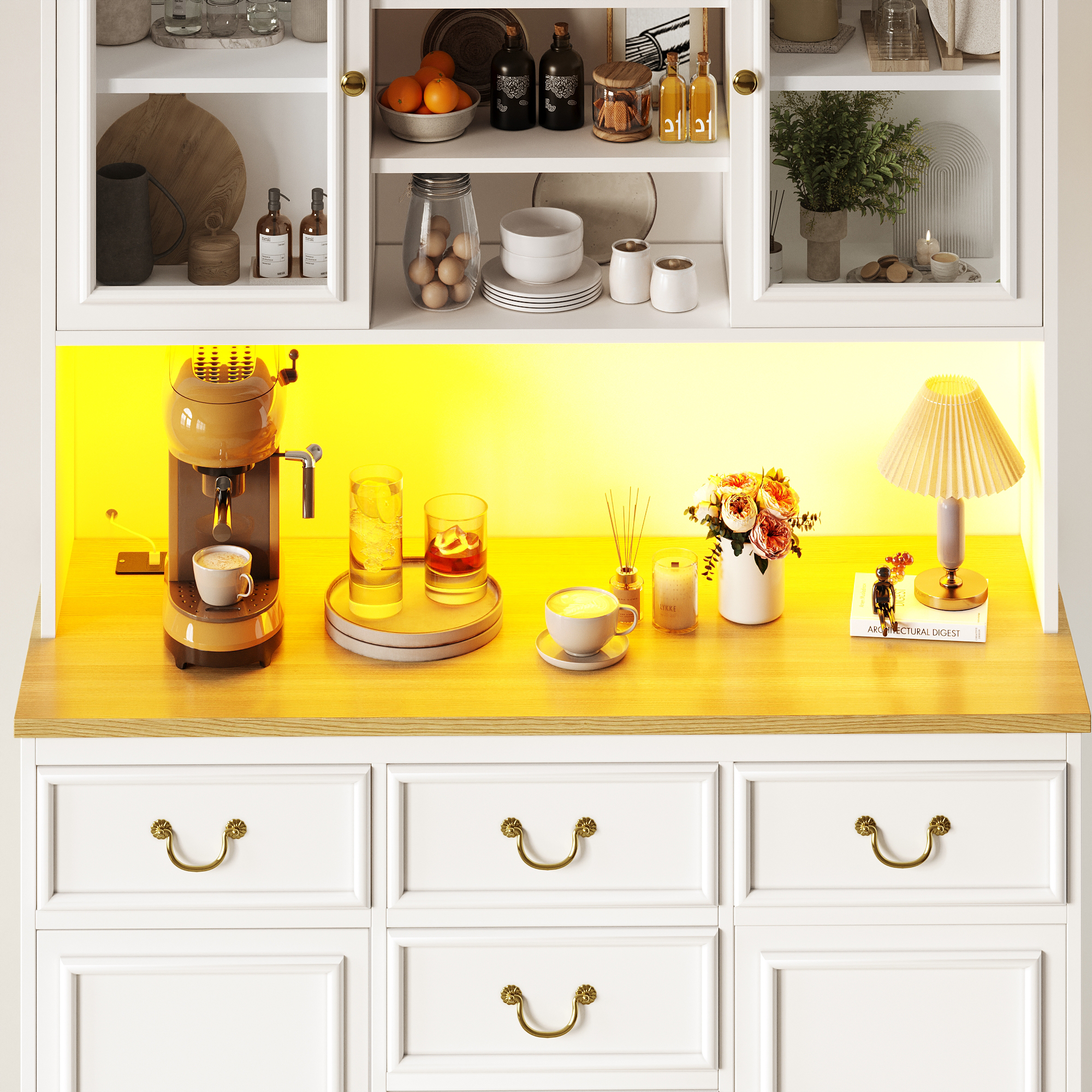 Product Name:Tall kitchen cabinet with USB ports and sockets, sideboard with LED light strip, kitchen cabinet, storage cabinet with snack shelf doors, sideboard, waste bin can be installed, white