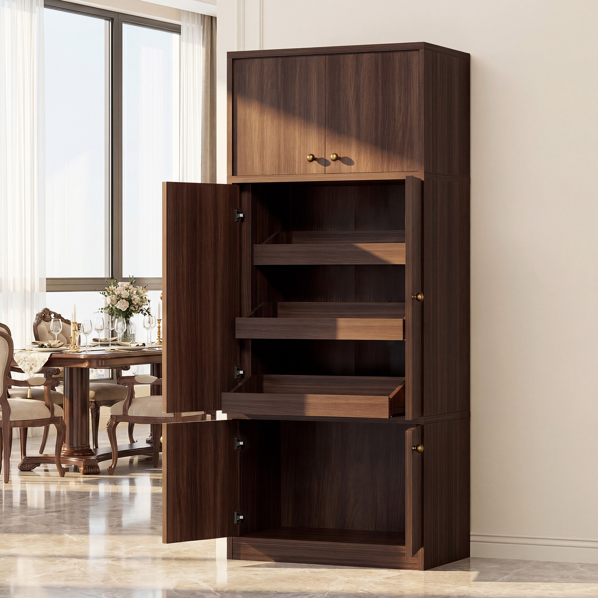 Tall Kitchen Pantry Cabinet 71 Inch Freestanding Storage Cabinet With Doors And Shelves, Adjustable Shelves, E1-Grade Wood, Walnut For Kitchen Pantry, Pantry Cabinets For Kitchen Storage
