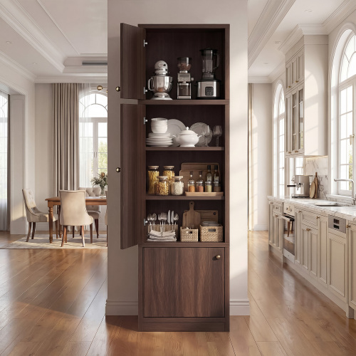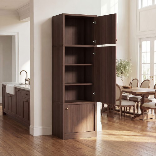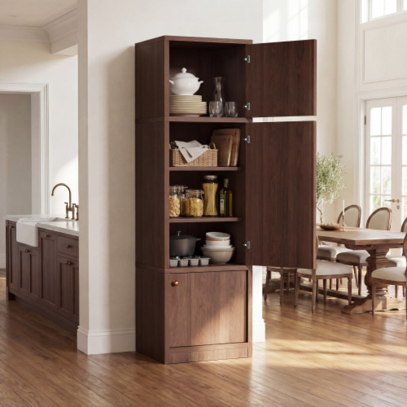 Tall Narrow Pantry Cabinet 71 Inch Freestanding Storage Cabinet With Doors And Shelves, Adjustable Shelves, Drawer & Anti-Tip Kit, E1-Grade Wood, Walnut For Bathroom Storage Cabinet, Small Spaces