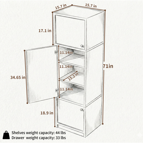 1.TALL NARROW PANTRY CABINET WITH ANTI-TIP KIT – Includes Anti-Tip Kit for added stability and safety; suitable for homes with children or pets; features heavy E1-grade wood board construction (2x heavier than many similar cabinets, total load up to 148 lbs series); secure for compact bathroom storage cabinet use. _x000b_
