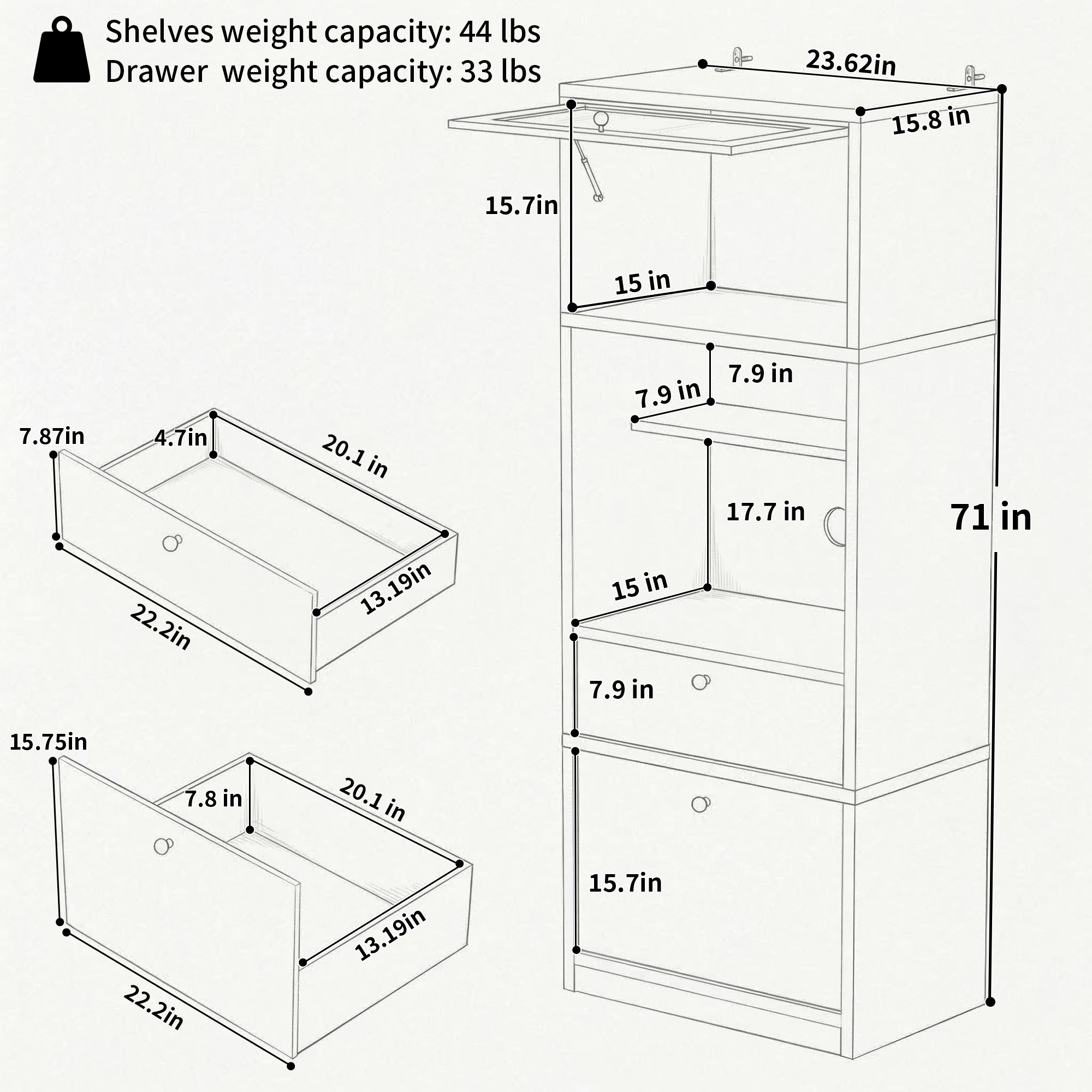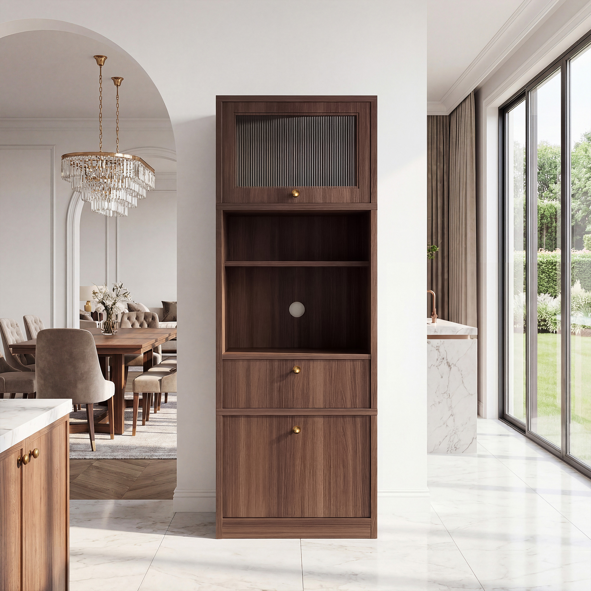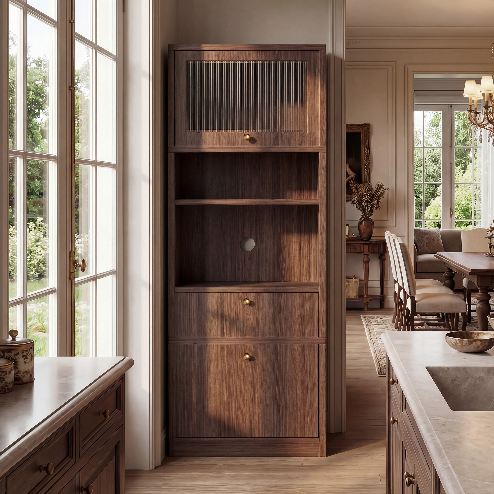 Product Name:Tall Pantry Cabinet 71 Inch Freestanding Storage Cabinet with Doors and Shelves, Adjustable Shelves, Drawer & Anti-Tip Kit, E1-Grade Wood, Walnut for Kitchen Pantry, Bathroom Storage Cabinet
