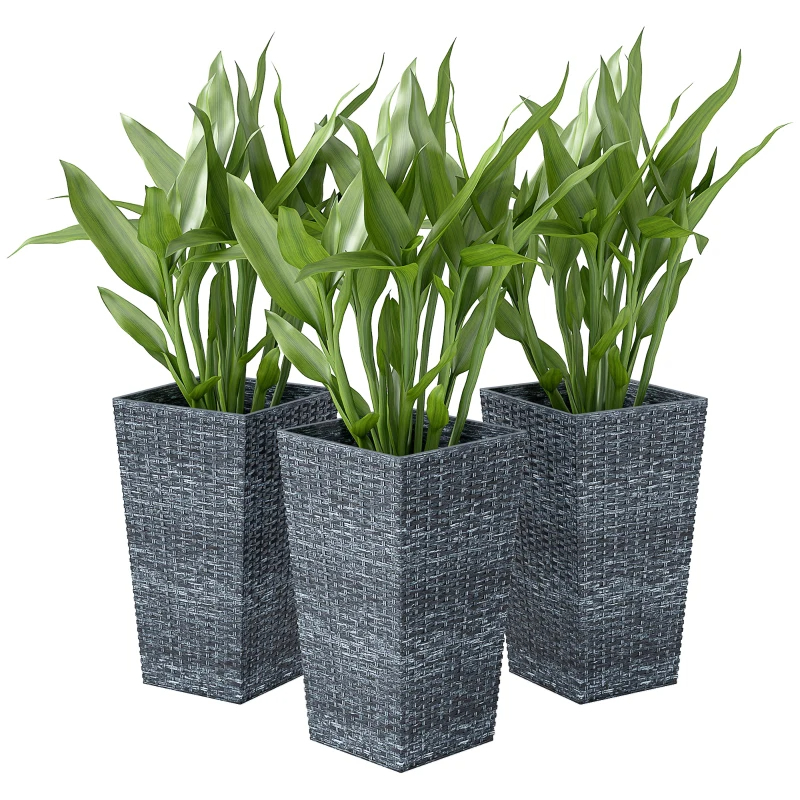 Tall Planters For Outdoor Plants Set Of 3, 24 In Taper Planters With Drainage Holes, Rattan Decor Plant Pots For Indoor Outdoor Front Porch Patio Backyard,