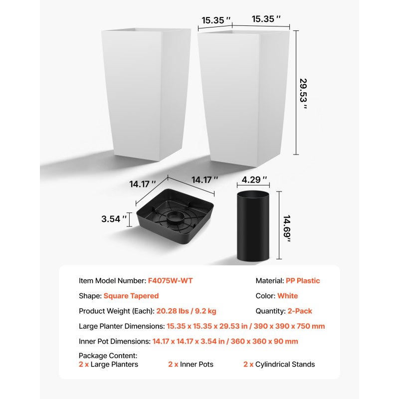 Strong Weather Durability: Crafted from premium weather-resistant plastic, these tall planters resist cracking and fading while staying stable in sun, rain, or snow. Ideal for both indoor and outdoor gardening