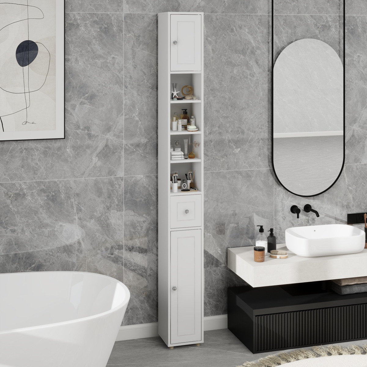 Product Name:Tall Slim Bathroom Storage Cabinet, 71" Freestanding Bathroom Cabinet with 1 Drawer, 2 Doors and 4 Adjustable Shelves-White