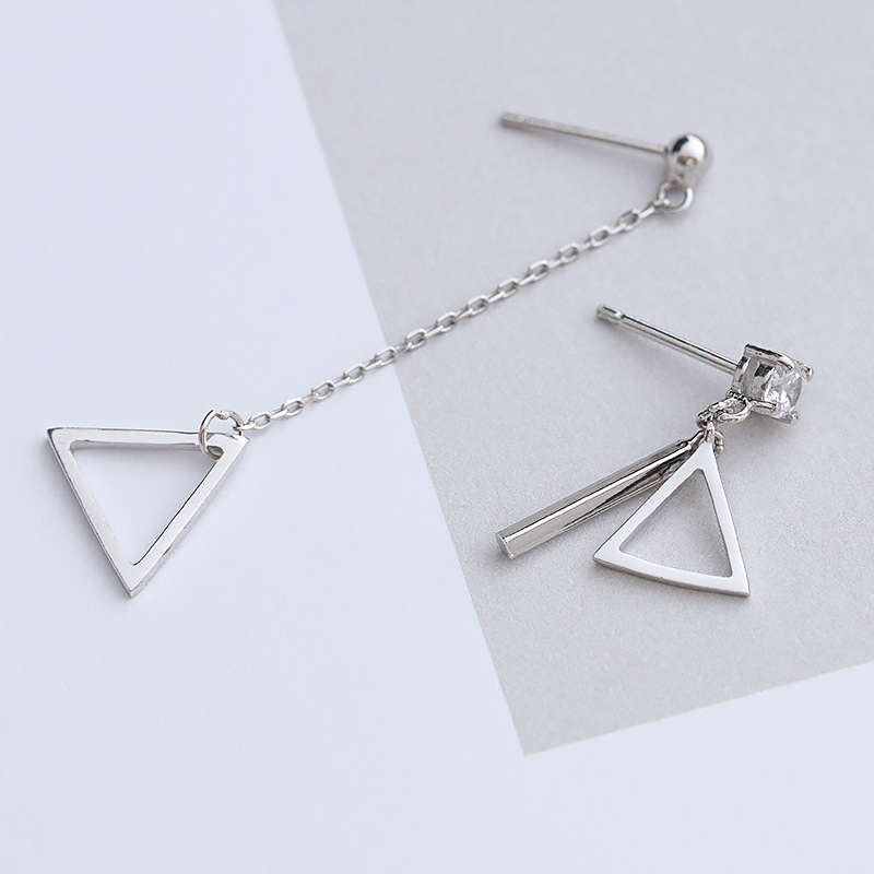 Taobao explosion models 925 Sterling Silver Earrings diamond triangle hollow asymmetric Long Ear Wire Earrings Jewelry simple woman