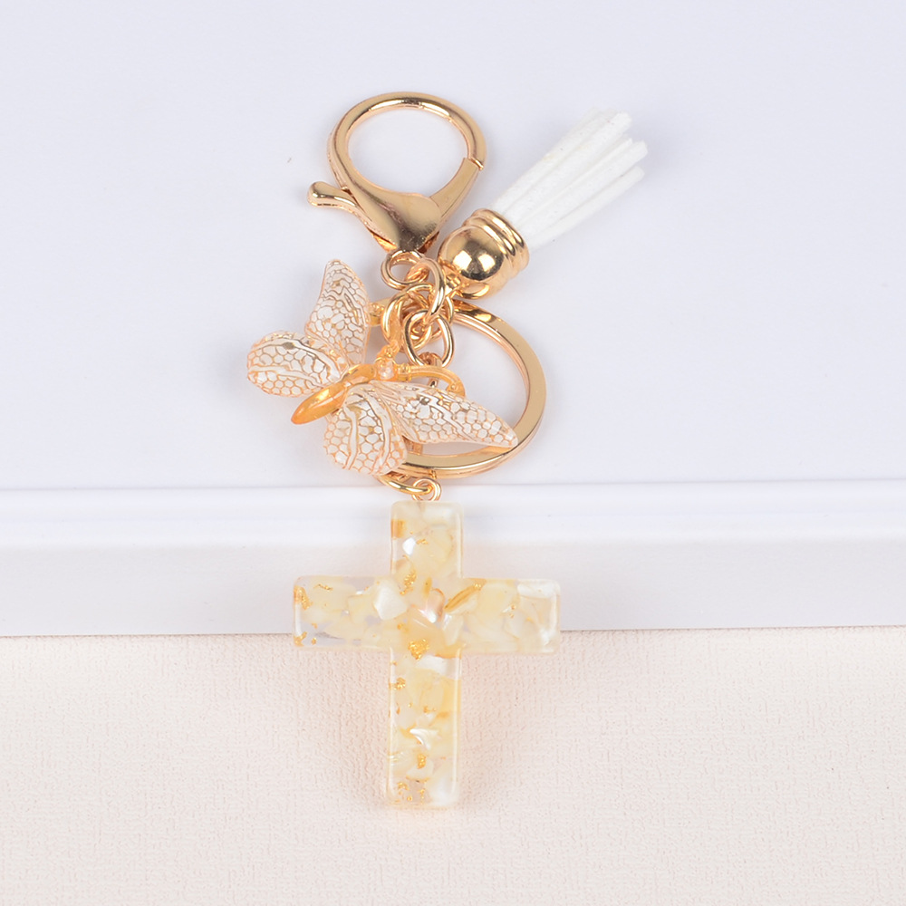 Tassel Butterfly Stone Cross Keychain