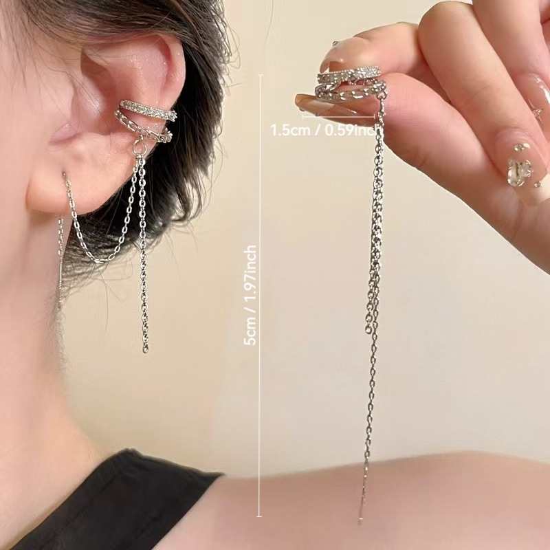 Color: Tassel-Diamond Ear Cuff [Silver Pair], Tassel-Diamond Ear Cuff [Gold Pair]