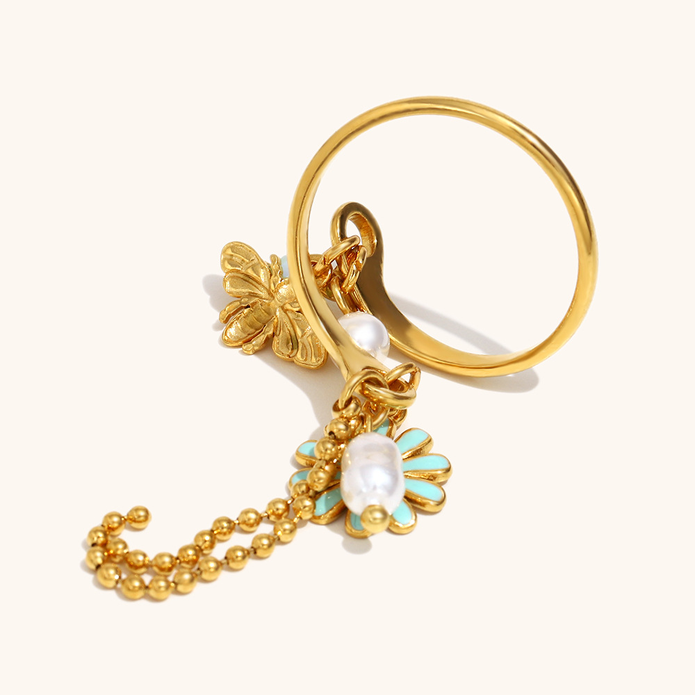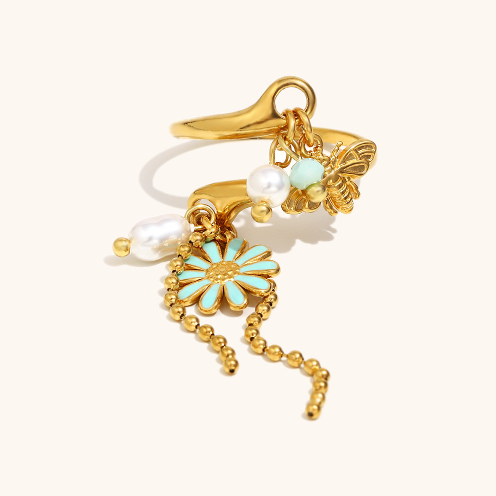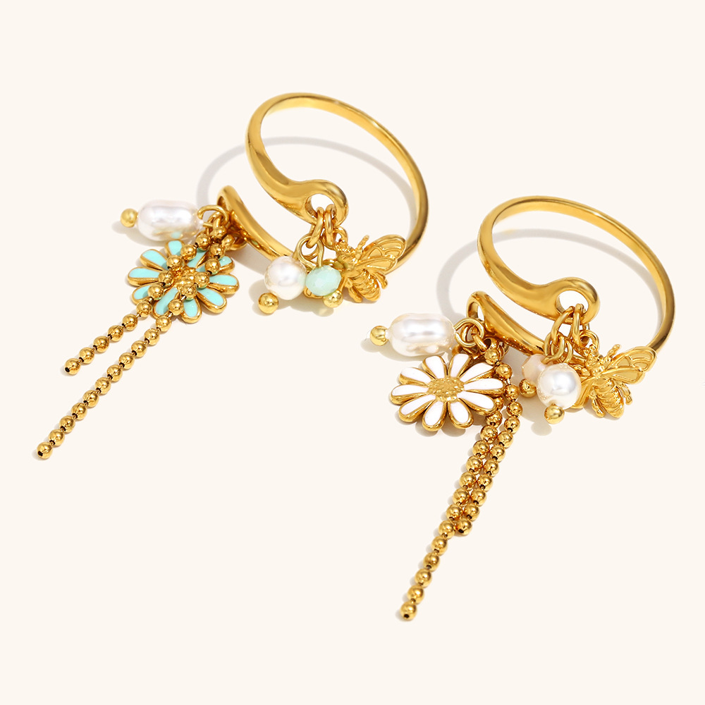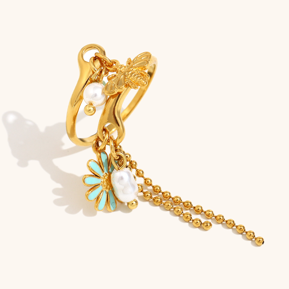 Tassel Open Ring Stainless Steel 18K Gold Plating Bee