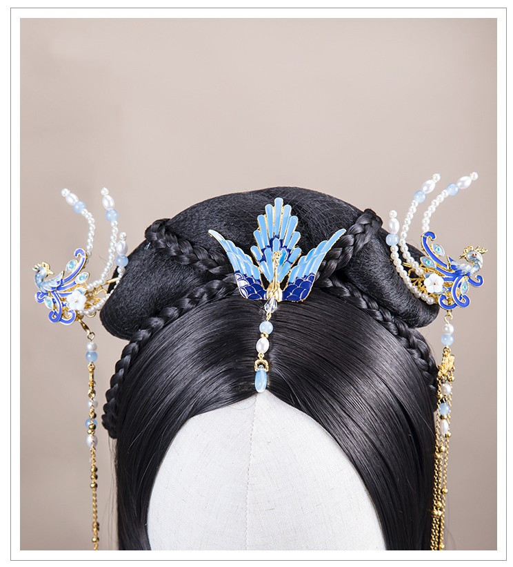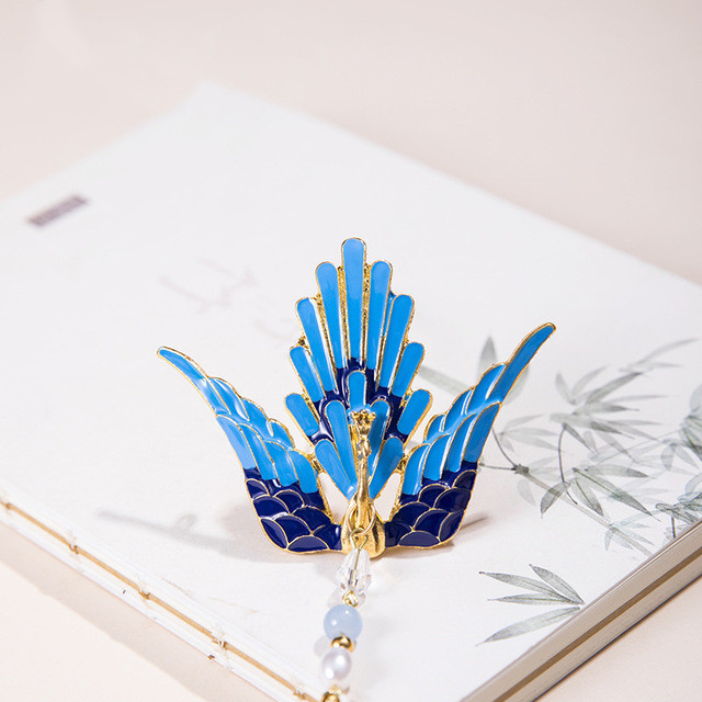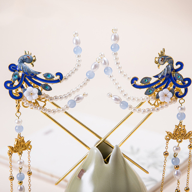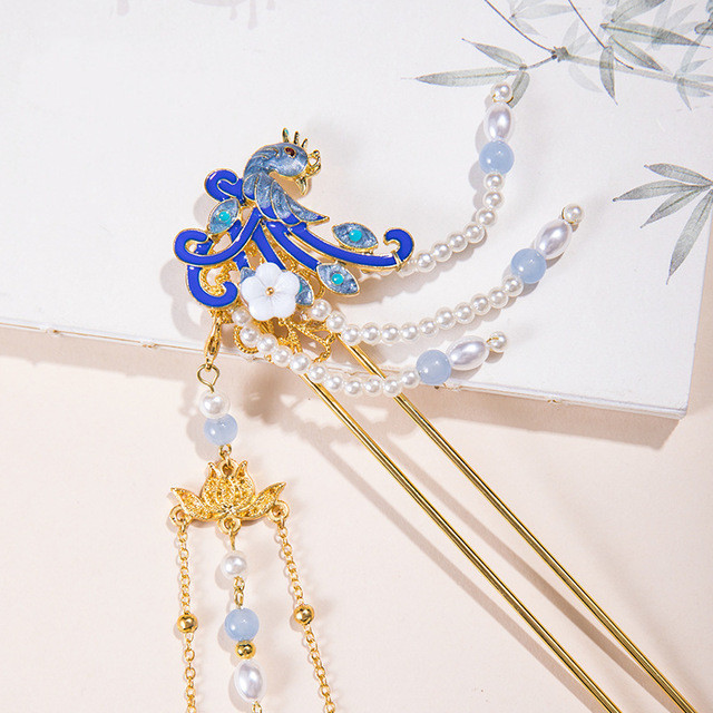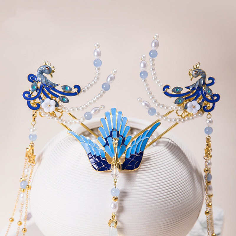 Tassel Peacock Burning Blue Hairpin Set