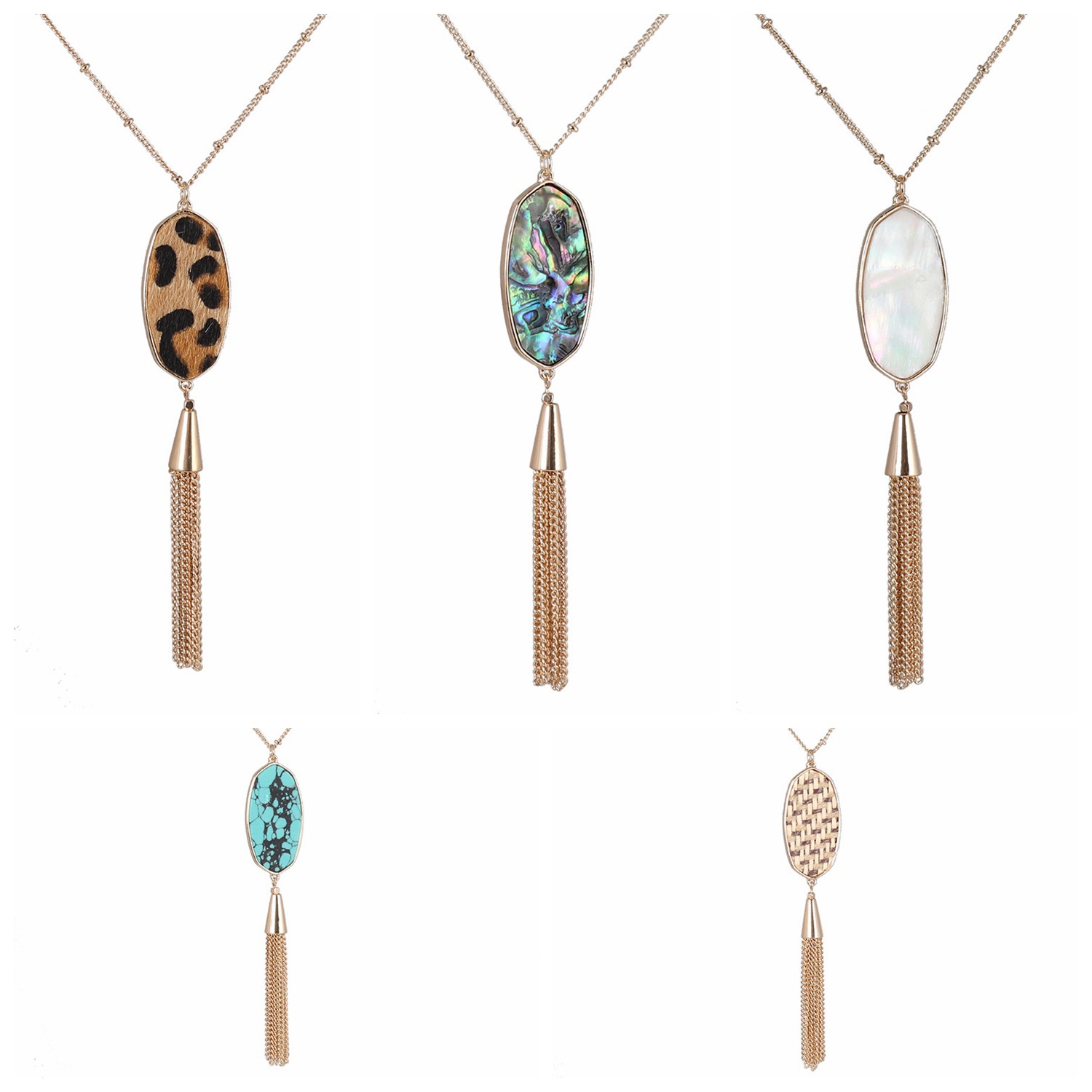 Color: Leopard-print suede N0993-2, straw woven N0993-1, abalone shell N0992-1, white shell N0992-2, turquoise N0992-3