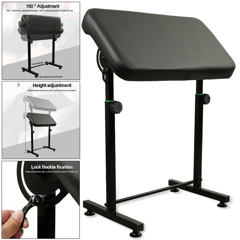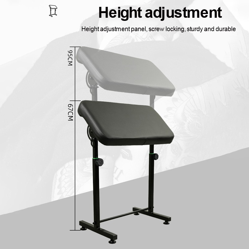 Adjustable Height: It is ergonomically designed to ensure comfort during tattooing and has an adjustable 26.38 ~ 37.4in height to accommodate various client needs and tattoo locations on the body, including the arm and leg.