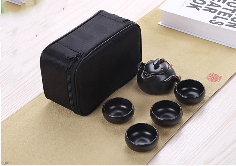 (Travel Bag), D Black One Pot And Four Cups With Tray (Travel Bag), E Black Pot