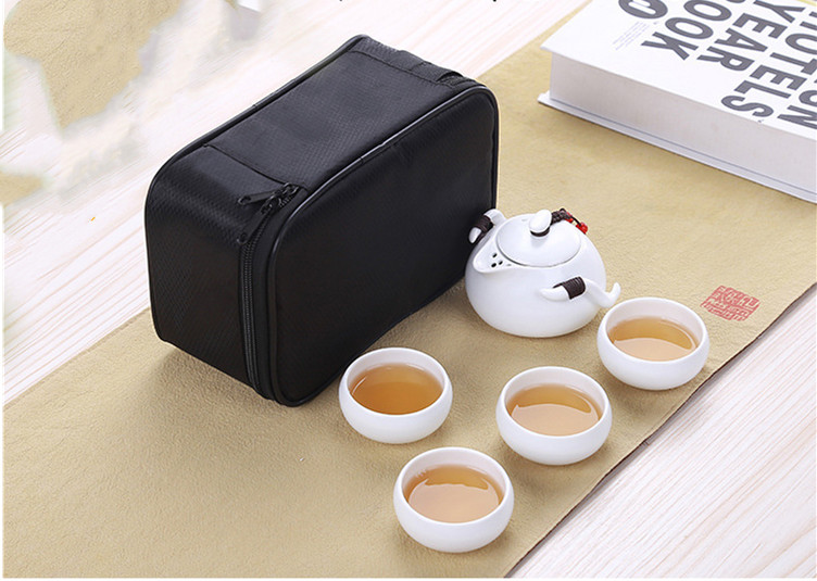 One Pot And Four Cups With Tray (Travel Bag), B White One Pot And Two Cups