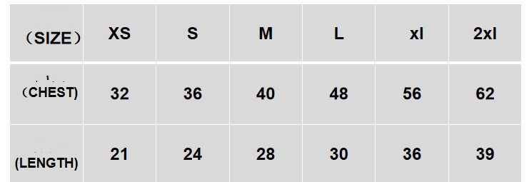Size: XS, S, M, L, XL, XXL