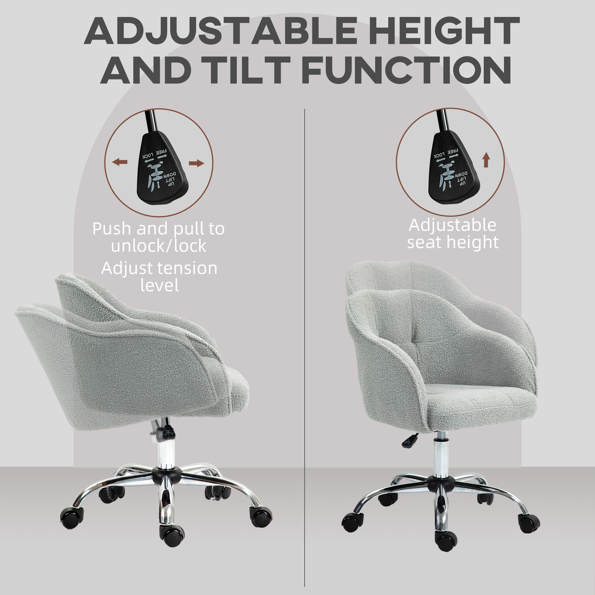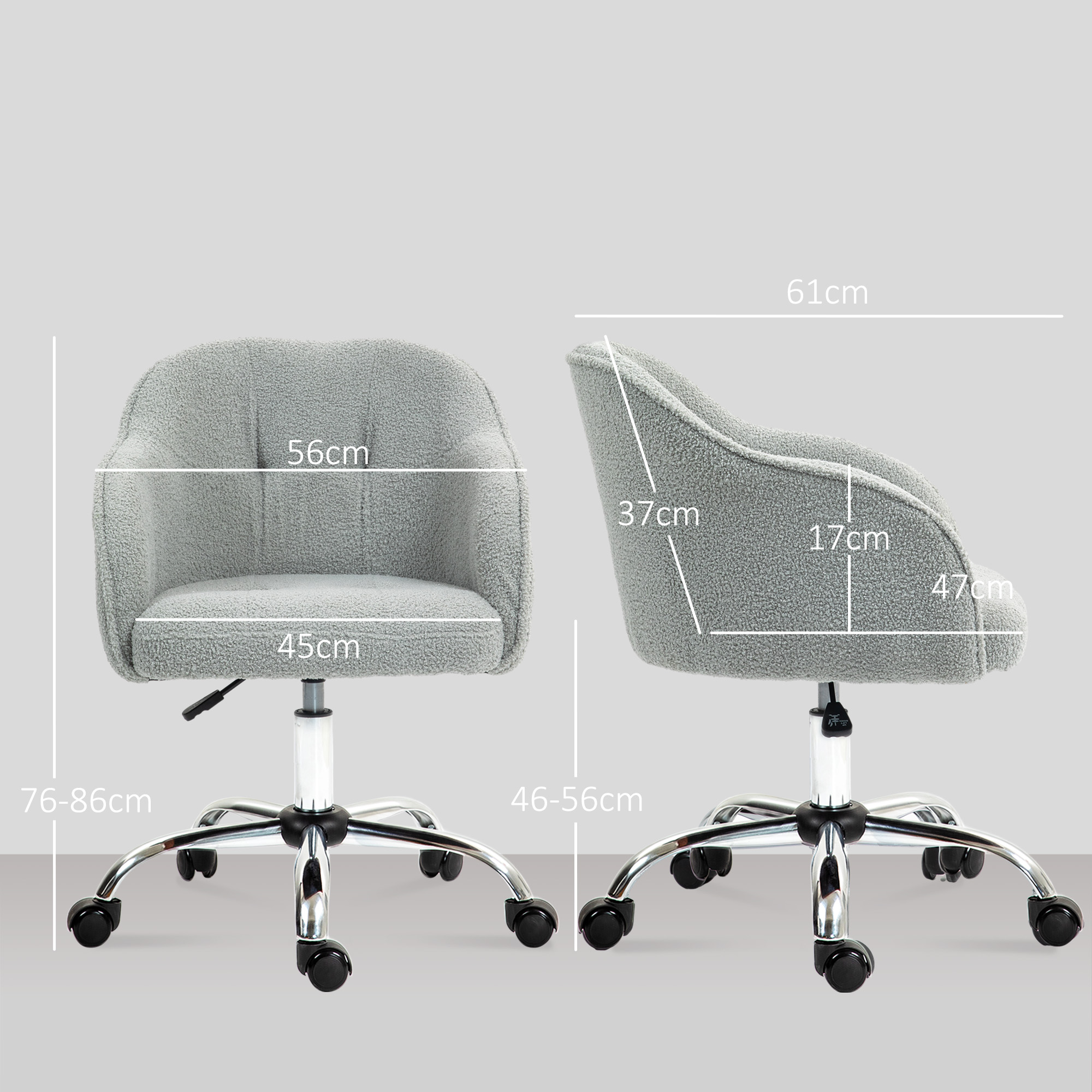 Snuggle into the work day with this office desk chair. The seat is wrappy in a teddy texture of the faux fleece upholstery: it's super soft. You can adjust the seat height between 46-56 cm, so you can sit at a level you want. Filled with sponge to sit comfortably, with a tall back and armrests for support, this small office chair is complete with five wheels to move it around easily.