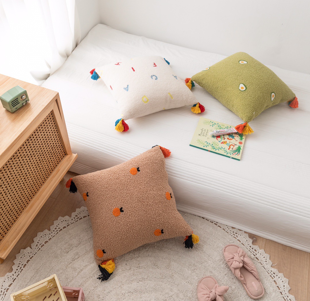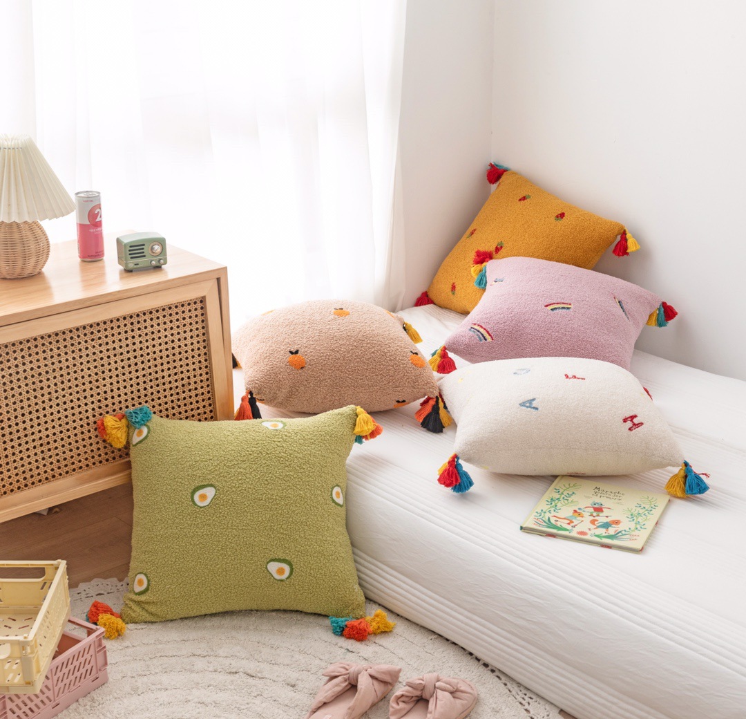 [Process] Teddy velvet embroidery, four-corner tassels, invisible zipper side seams