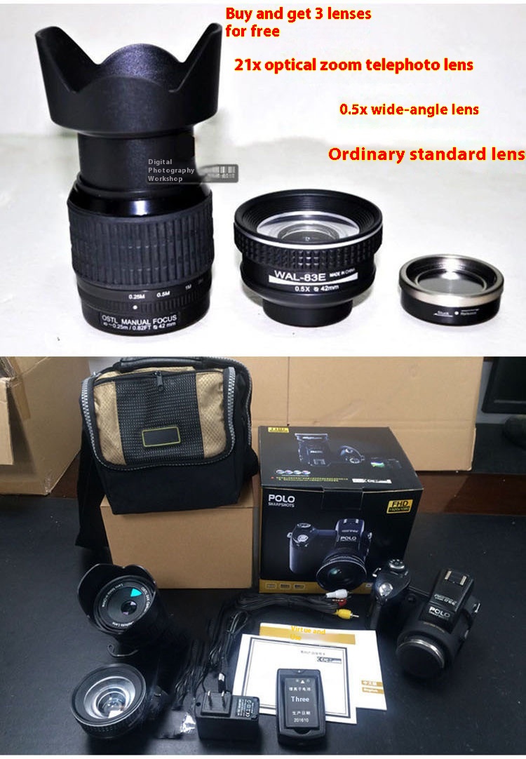 Camera telephoto lens, wide-angle lens, regular lens, seat charging data cable, AV cable, charging head, camera bag, sling