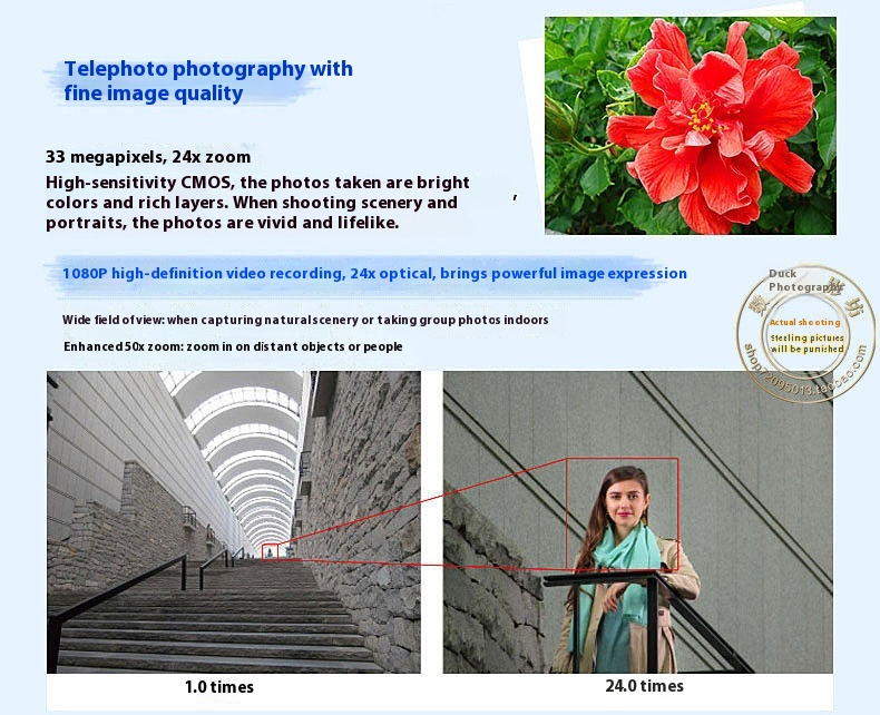 Special feature: telephoto, supporting external flash