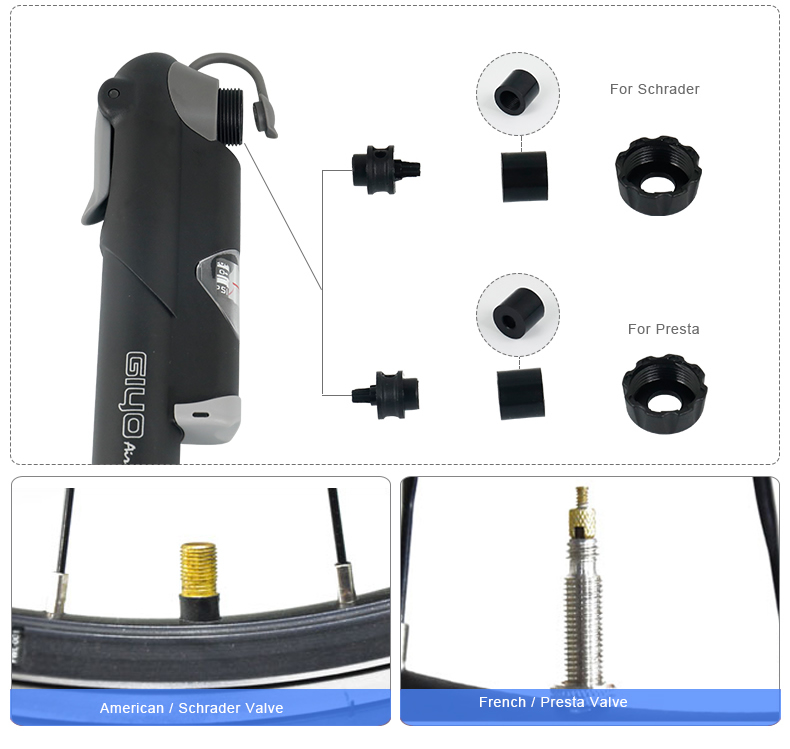 The reversible valve fits the American valve (Schrader) and French valve (Presta).