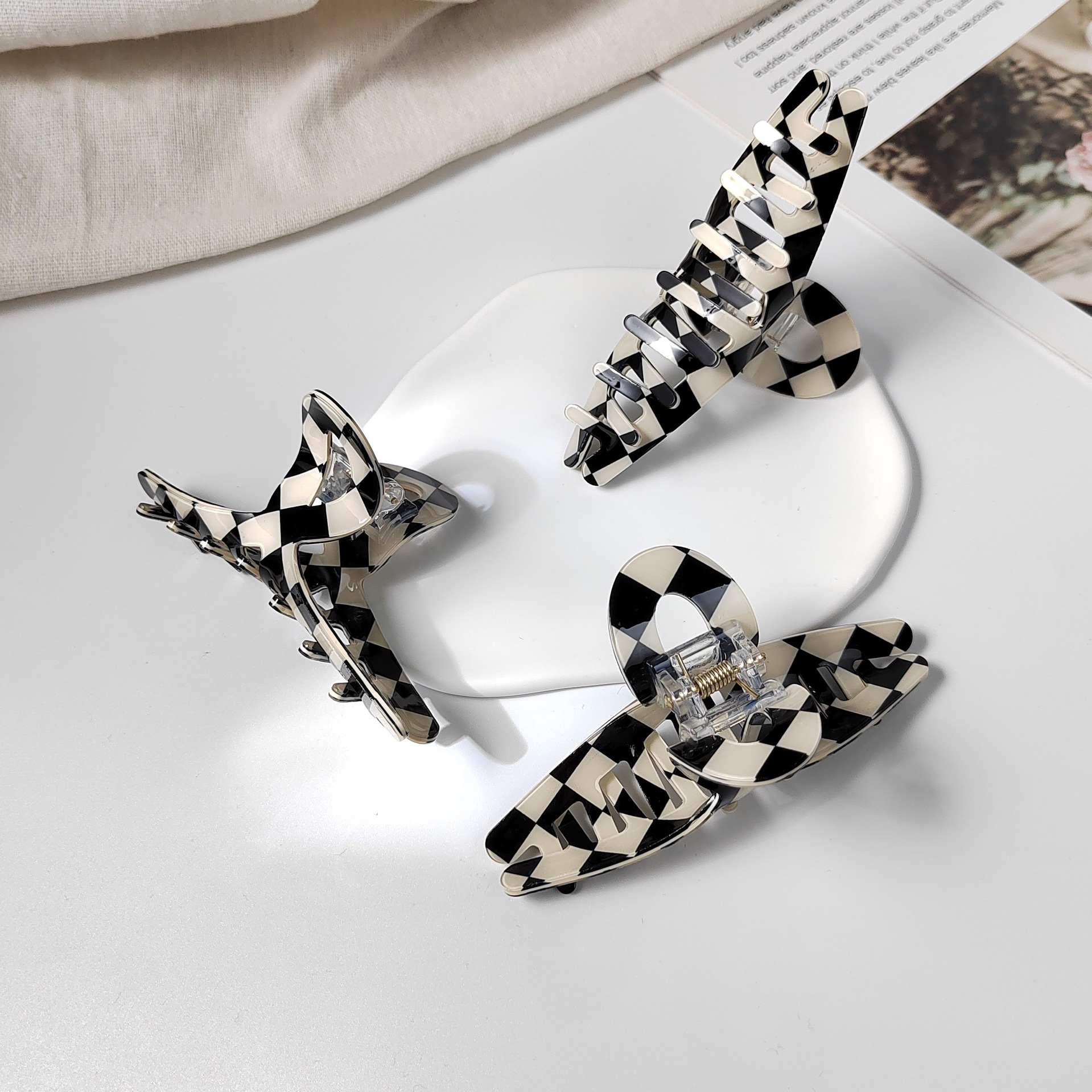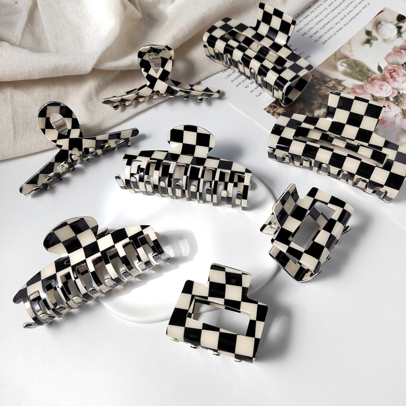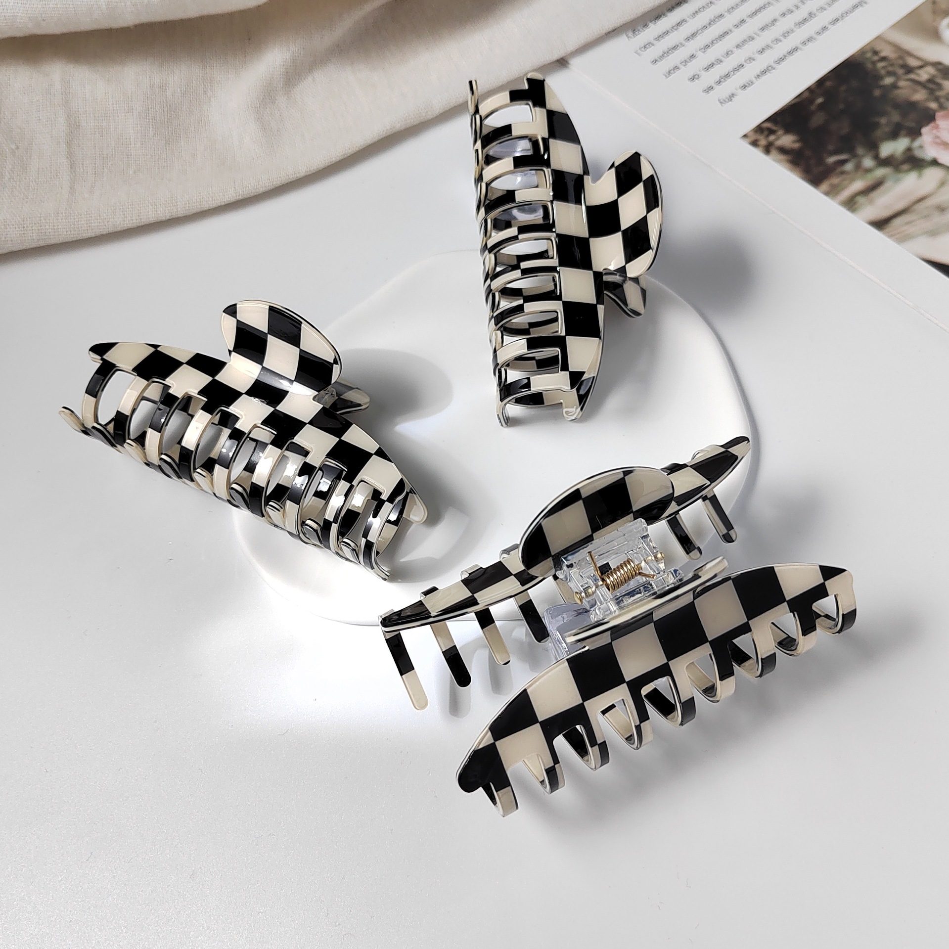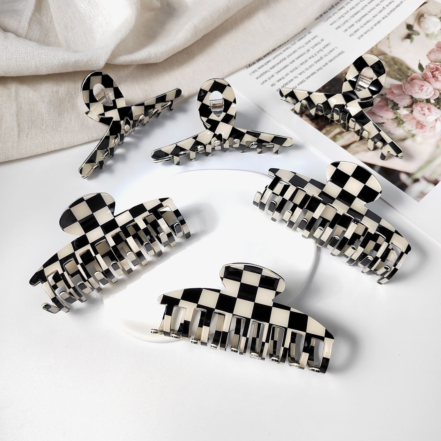 Temperament Black And White Checkerboard Grab Clip Retro Hair Accessories