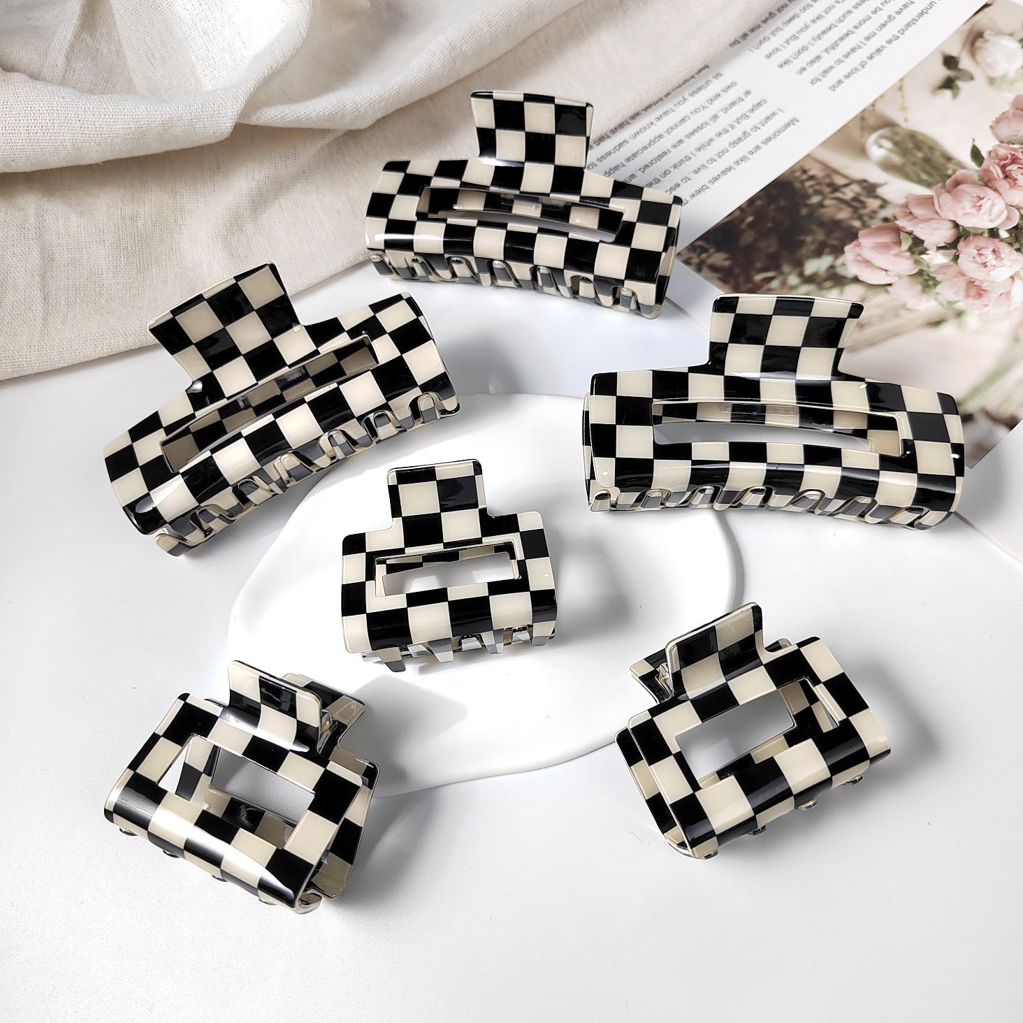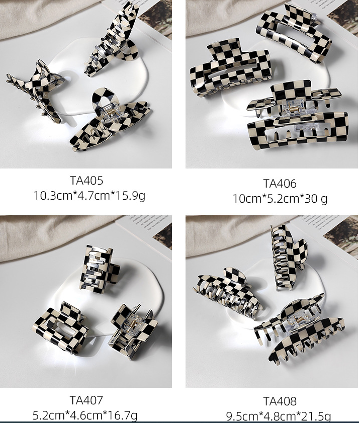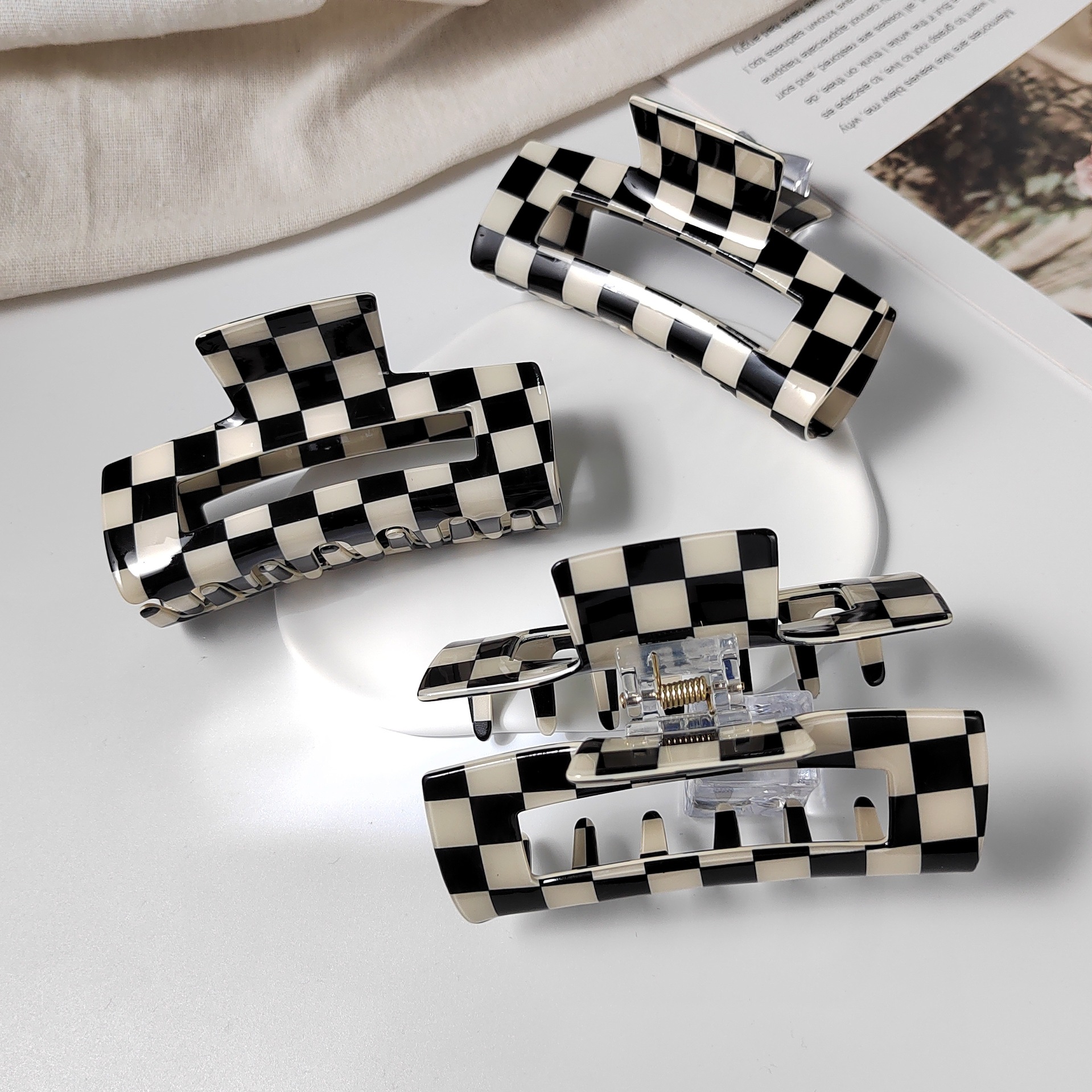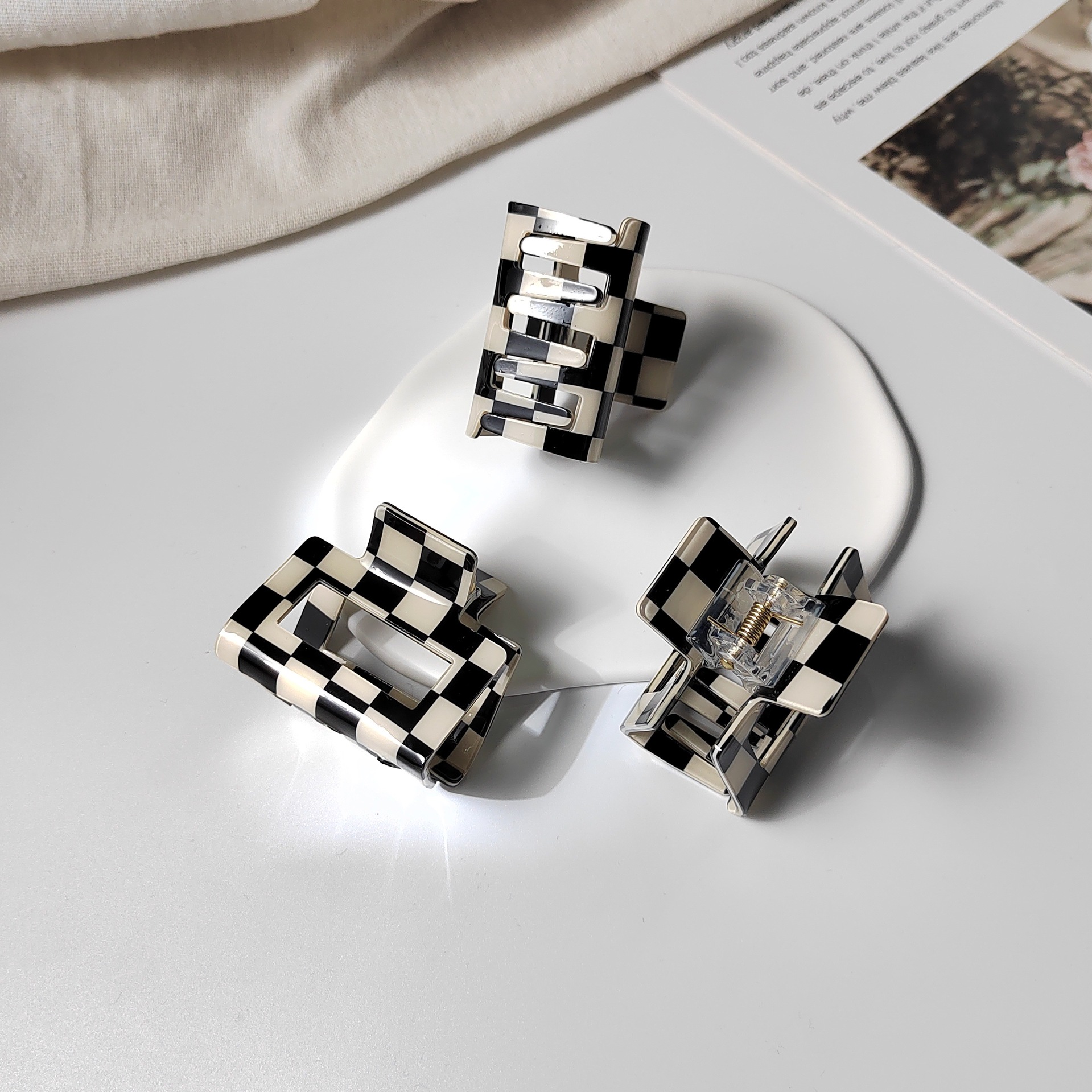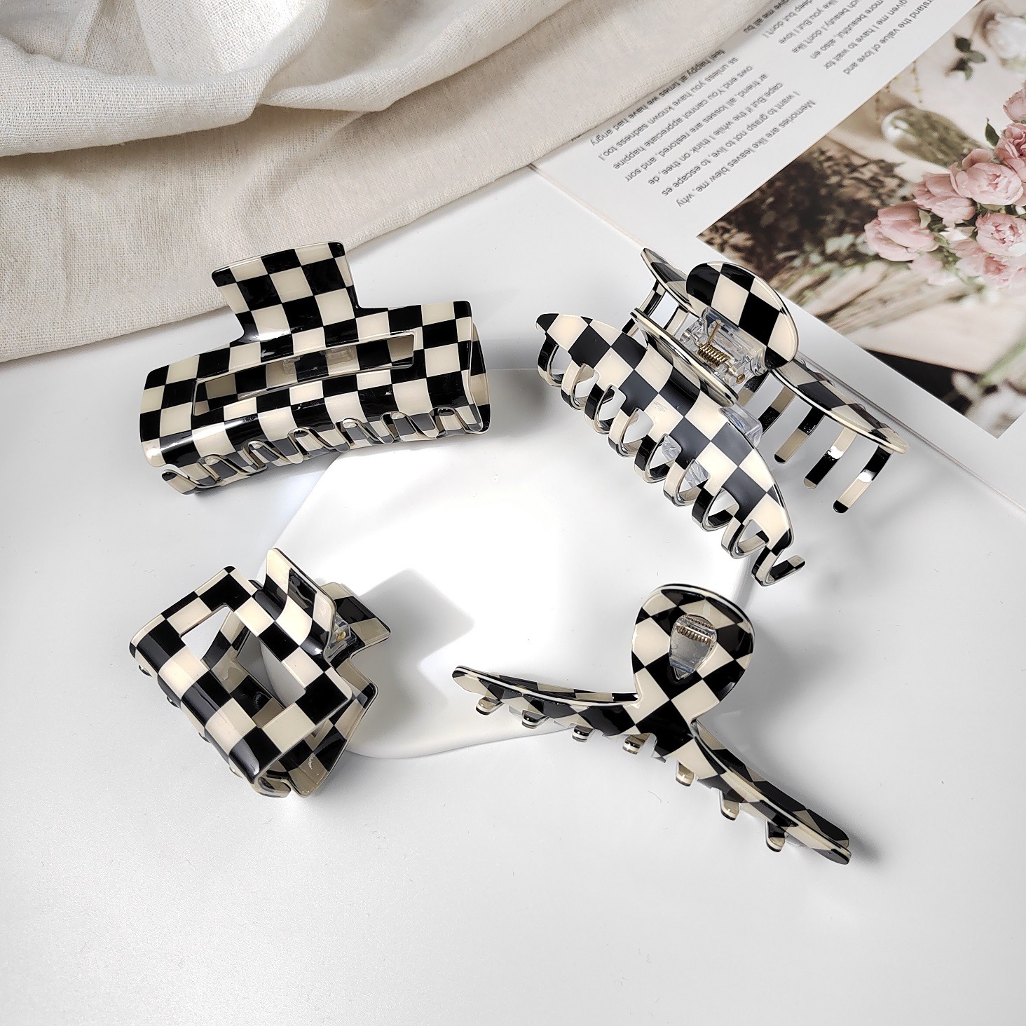 Temperament Black And White Checkerboard Grab Clip Retro Hair Accessories