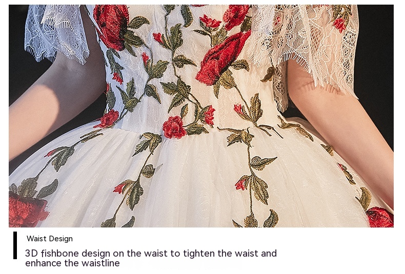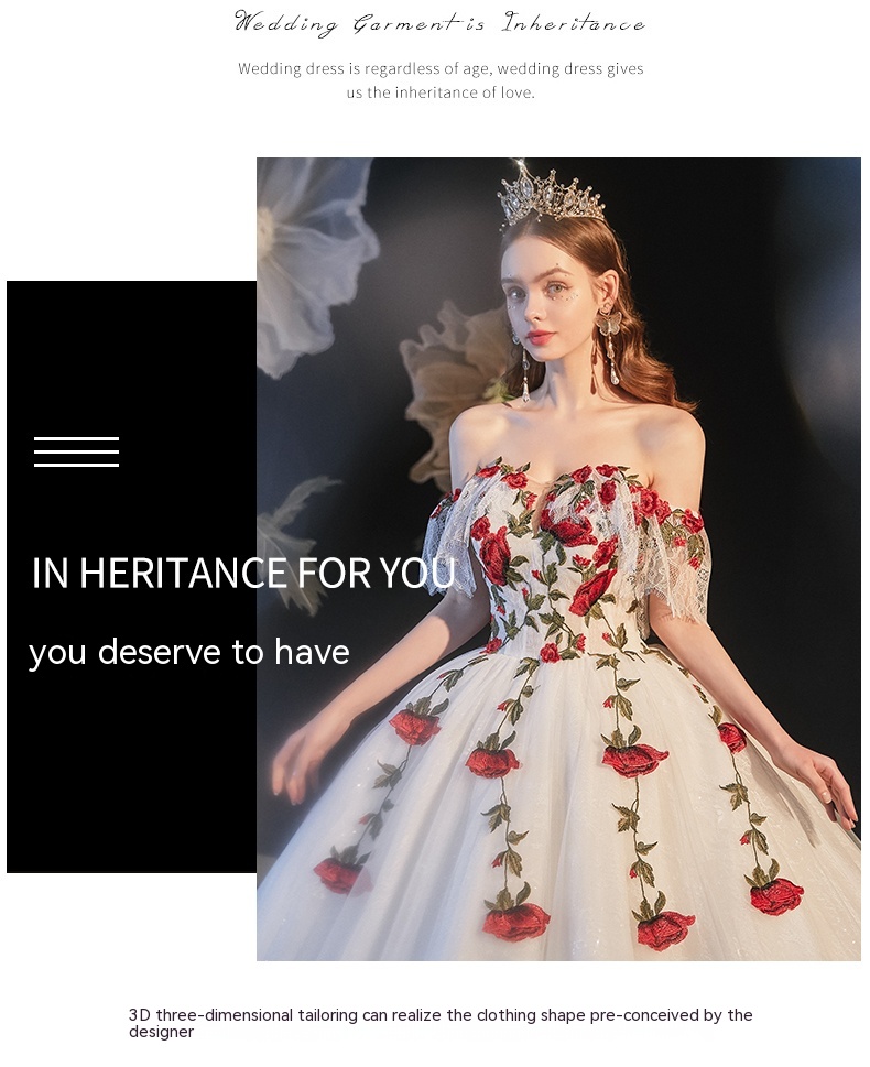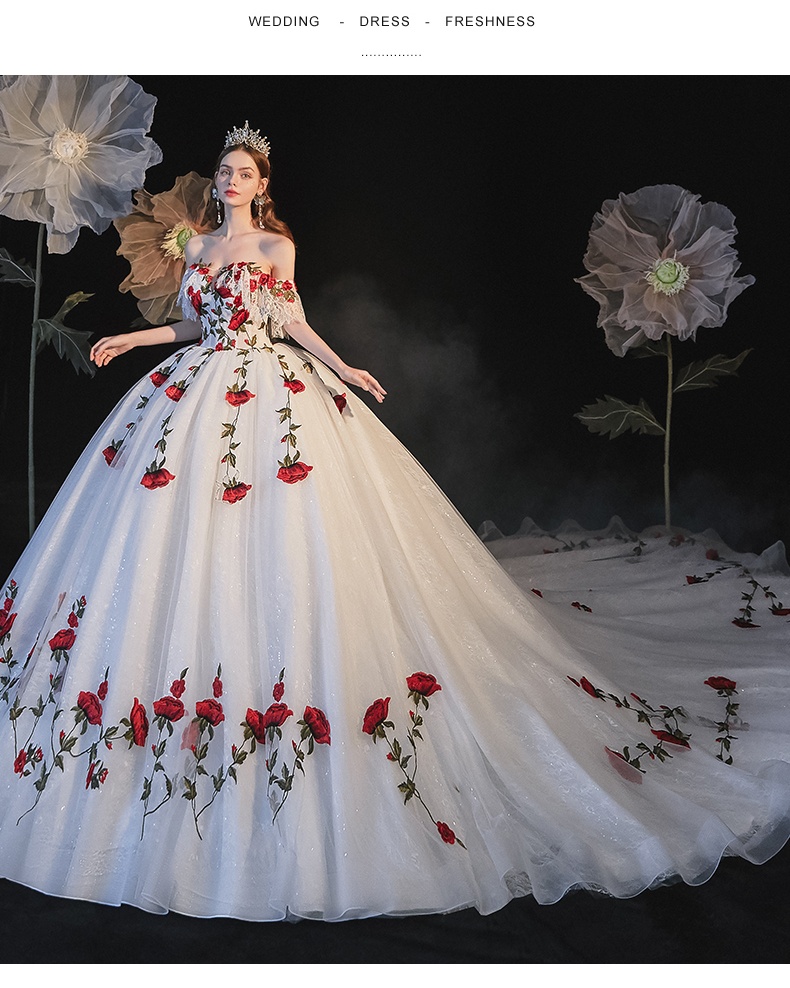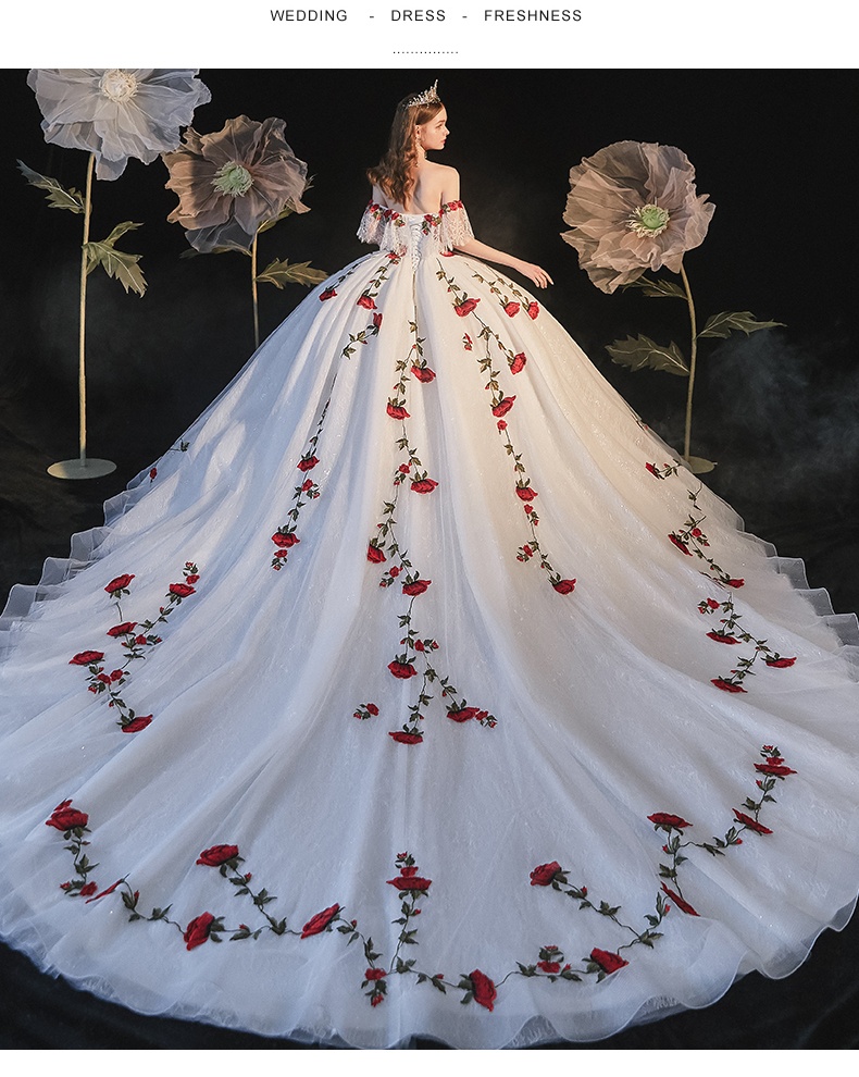 Color: floor wedding dress, trailing wedding dress