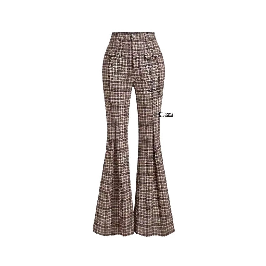 Temperament Commute High Waist All-matching Plaid Striped Retro Trousers