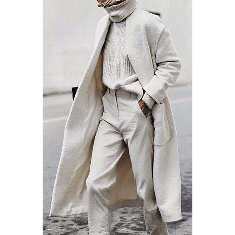 Temperament Commuter Loose Wool Gray Solid Color Coat