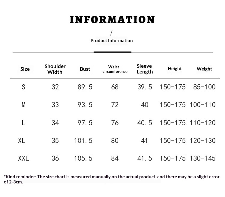 1. Asian sizes are 1 to 2 sizes smaller than European and American people. Choose the larger size if your size between two sizes. Please allow 2-3cm differences due to manual measurement. 2. Please check the size chart carefully before you buy the item, if you don't know how to choose size, please contact our customer service. 3.As you know, the different computers display colors differently, the color of the actual item may vary slightly from the following images.