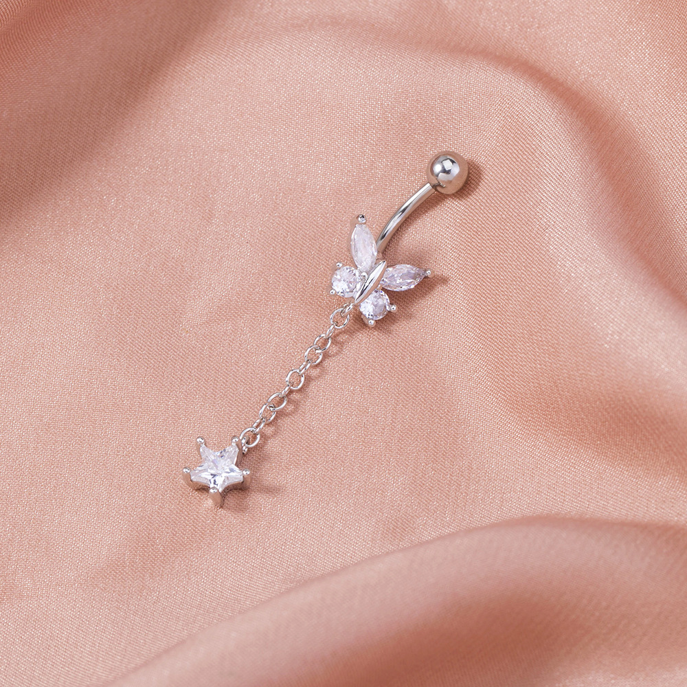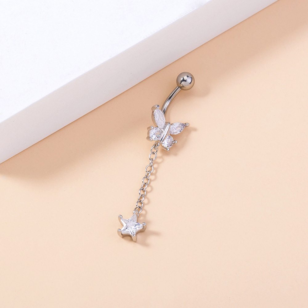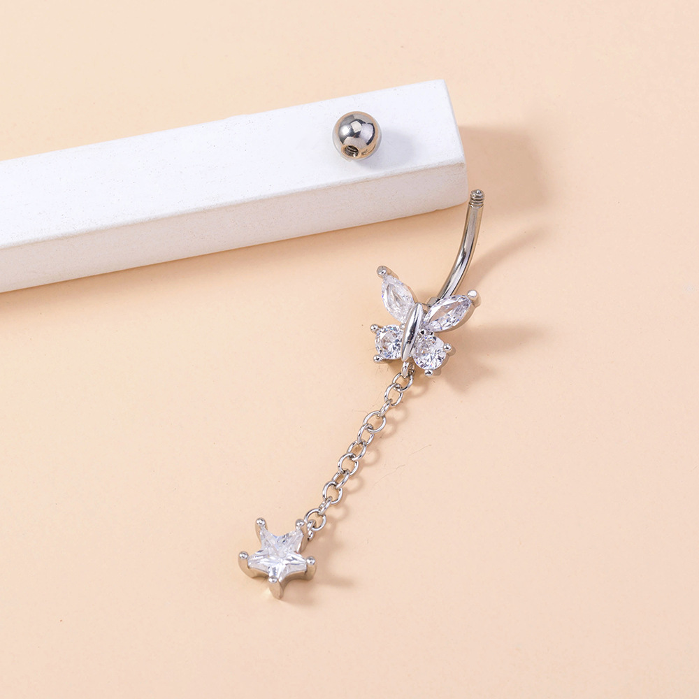 Temperament Micro-inlaid Tassel Long Butterfly Belly Button Nails