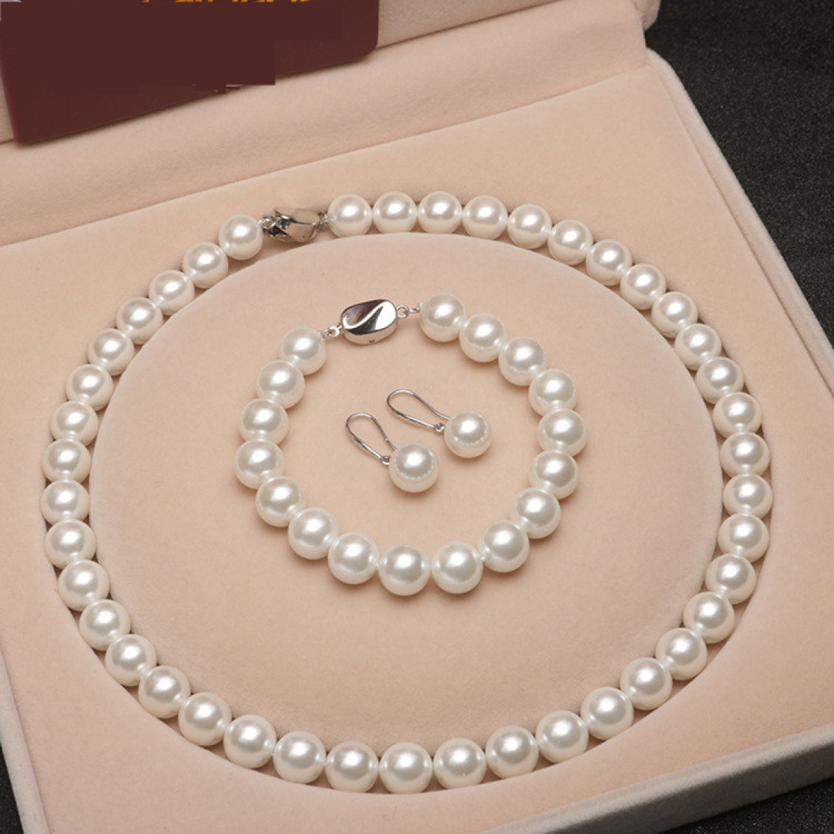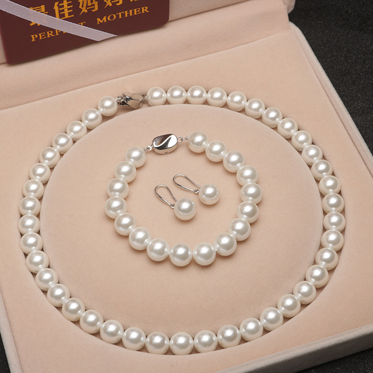 Color: A: 8mm white shell beads [necklace + bracelet + earrings] (no gift box), B: 8mm white shell beads [necklace + bracelet] (no gift box), C: 8mm white shell beads [single necklace] (no gift box) , D: 10mm white shell beads [necklace + bracelet + earrings] (no gift box), E: 10mm white shell beads [necklace + bracelet] (no gift box), F: 10mm white shell beads [single necklace] (no gift box)