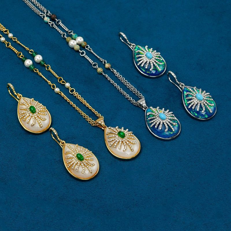 Temperament Palace Feng Shui Drop Shaped Earnail Necklace Set