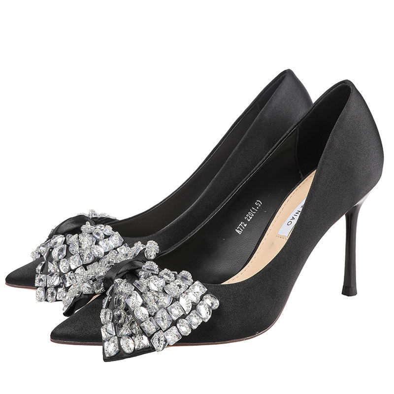 Temperament Satin Bow Fashion Pointed Toe Stiletto Women's