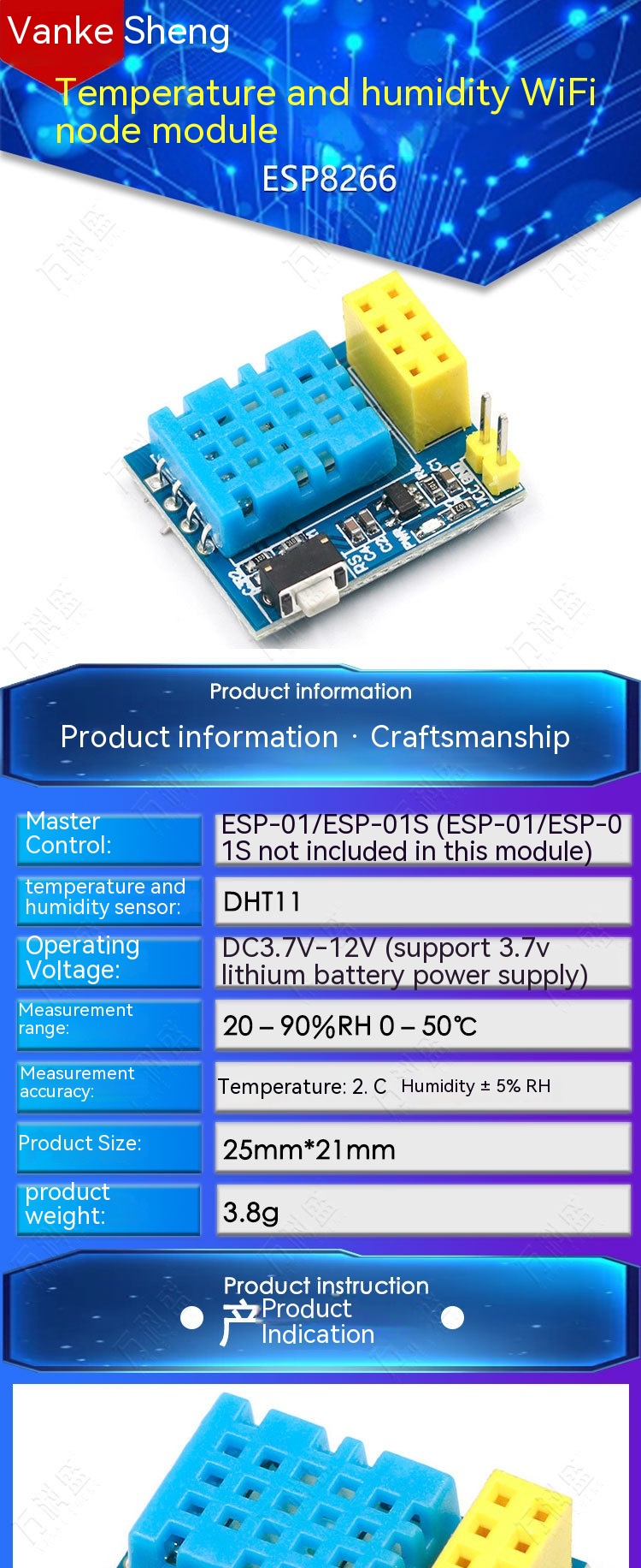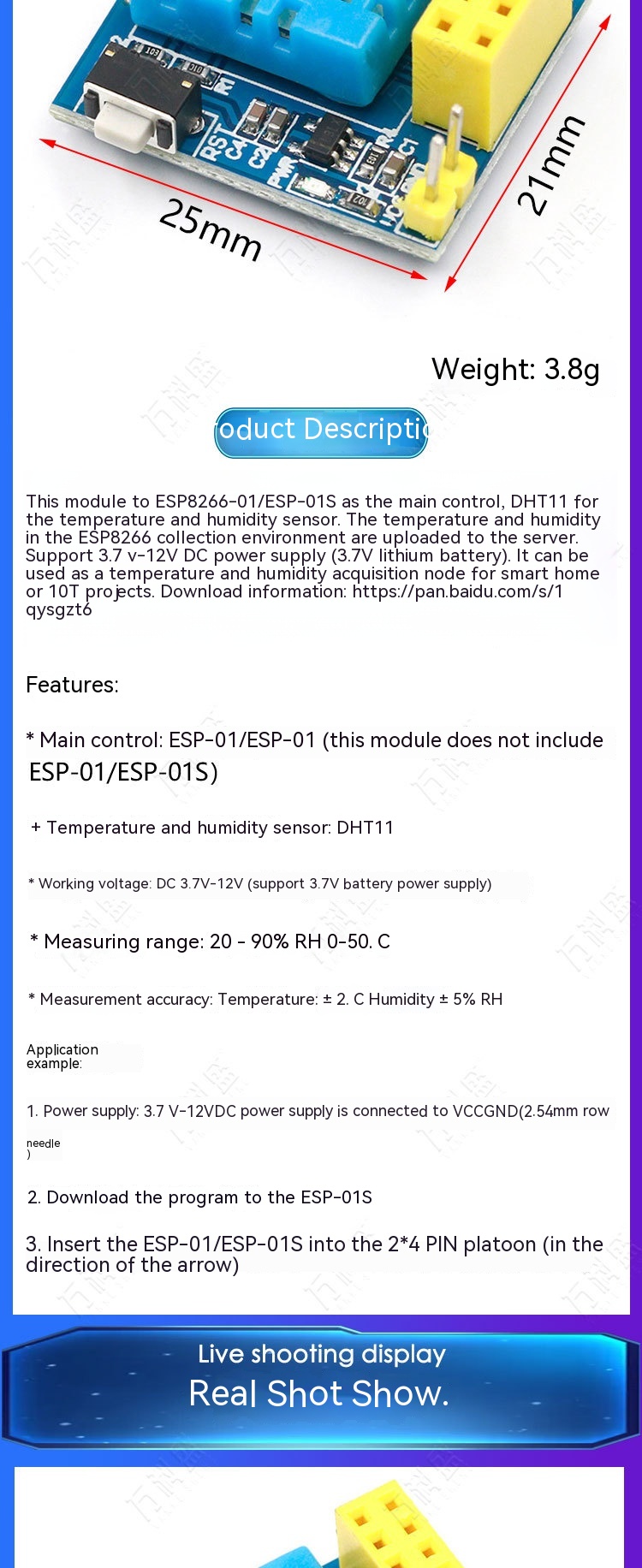 Operating voltage: DC 3.7V-12V (support 3.7V lithium battery power supply)