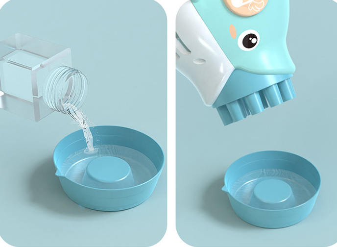 4、Easy to Use: Our colorful bubble machine uses 3 AA batteries (batteries not included), easy to connect and use. Pour the bubble water into the additional board, immerse the bubble machine in the bubble water, and then press the switch to enjoy your bubble time. (Note that due to environmental protection issues, we do not provide bubble liquid, you and your children need to DIY to make the game more interesting).